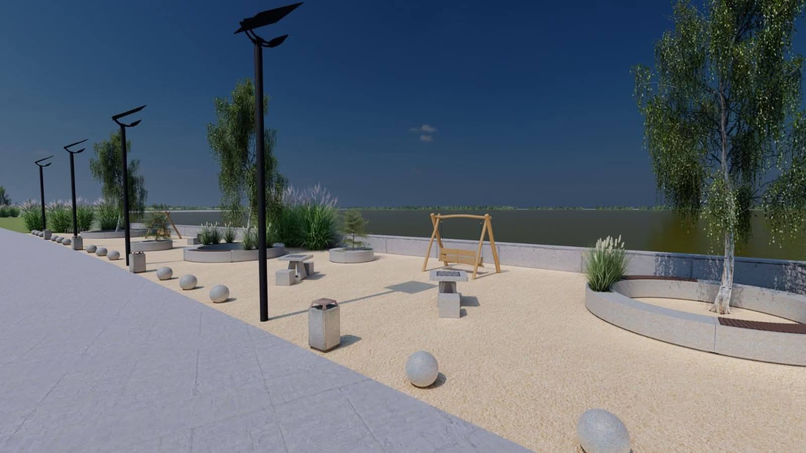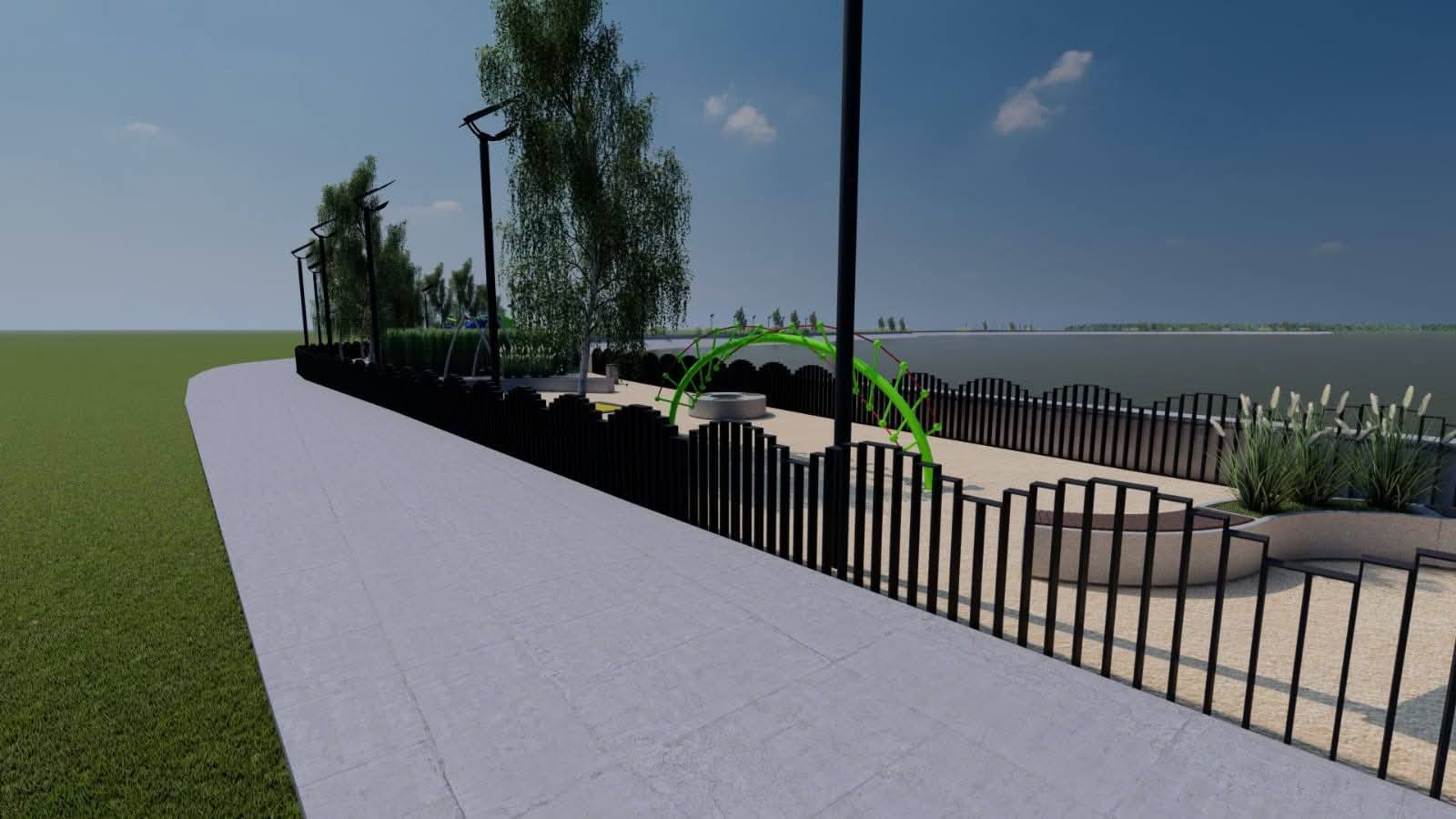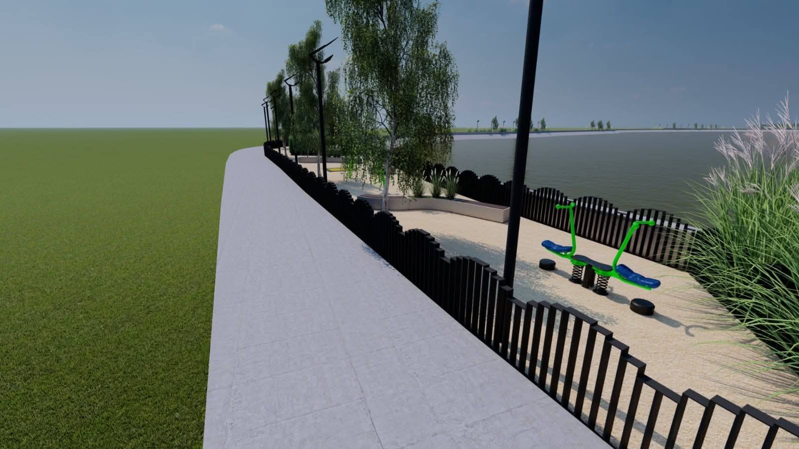 - 1,3 kilometri de promenadă și, din loc în loc, vor fi prevăzute zone de recreere și de odihnă, locuri de joacă pentru copii împrejmuite, iluminat public, dar și amenajări peisagistice/jardiniere;