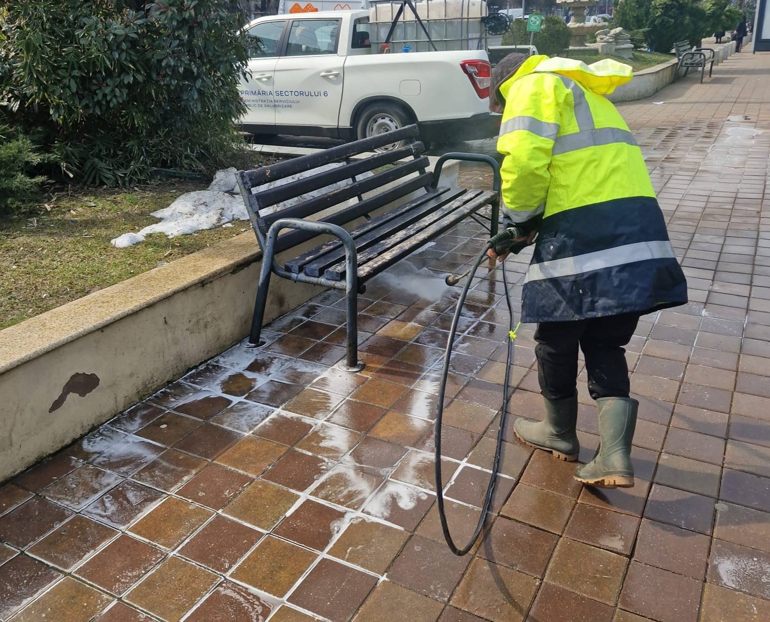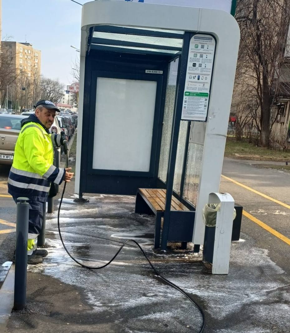 Și tot alături de Salubrizare Sector 6, am ieșit la spălat stații STB, trotuare, stâlpișori, mobilier urban.