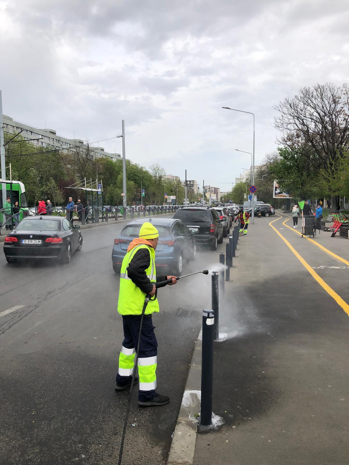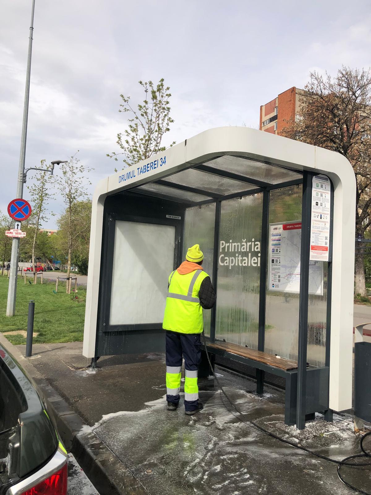 • Igienizăm stâlpișorii, bolarzii, stațiile STB, semnele de circulație și mobilierul urban.