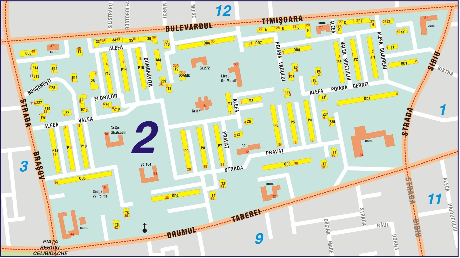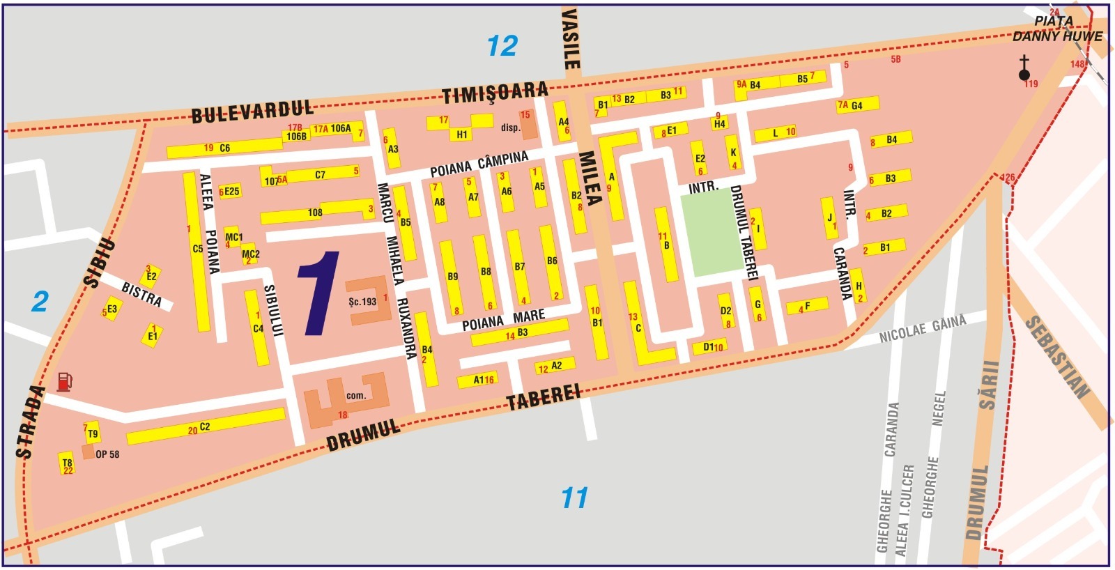 • Străzi principale: Str. Brașov, Bd. Timișoara, Bd. Drumul Taberei