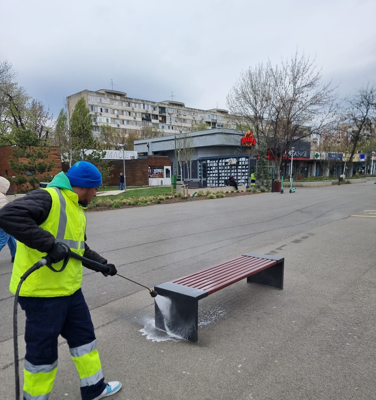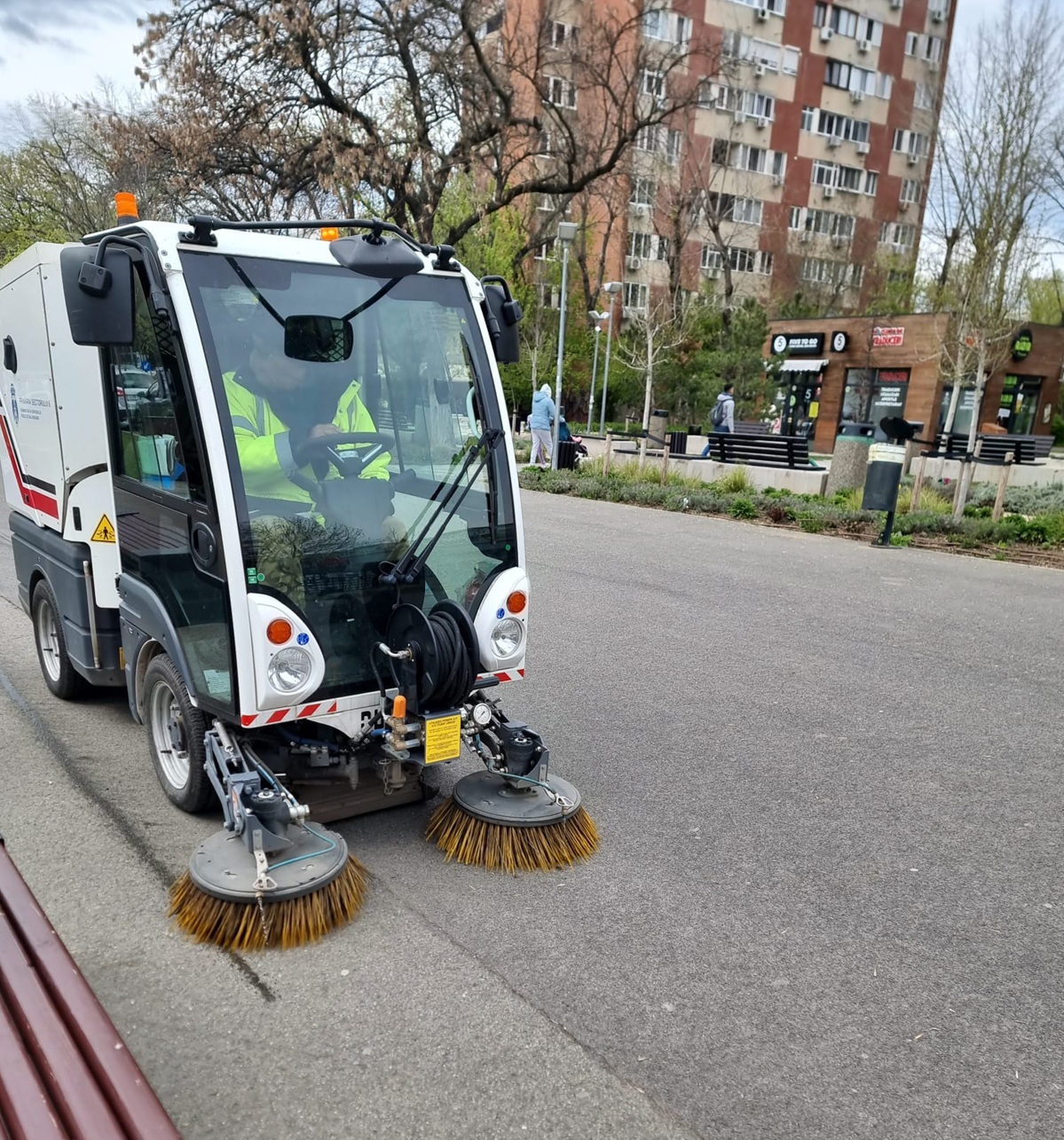 Vineri, 25 aprilie, începând cu ora 10.00, 5 echipe formate din câte 5 muncitori stradali și o perie mecanizată vor mătura trotuarele și aleile, vor spăla suprafețele pietonale și vor vidanja coșurile stradale în aceste zone.