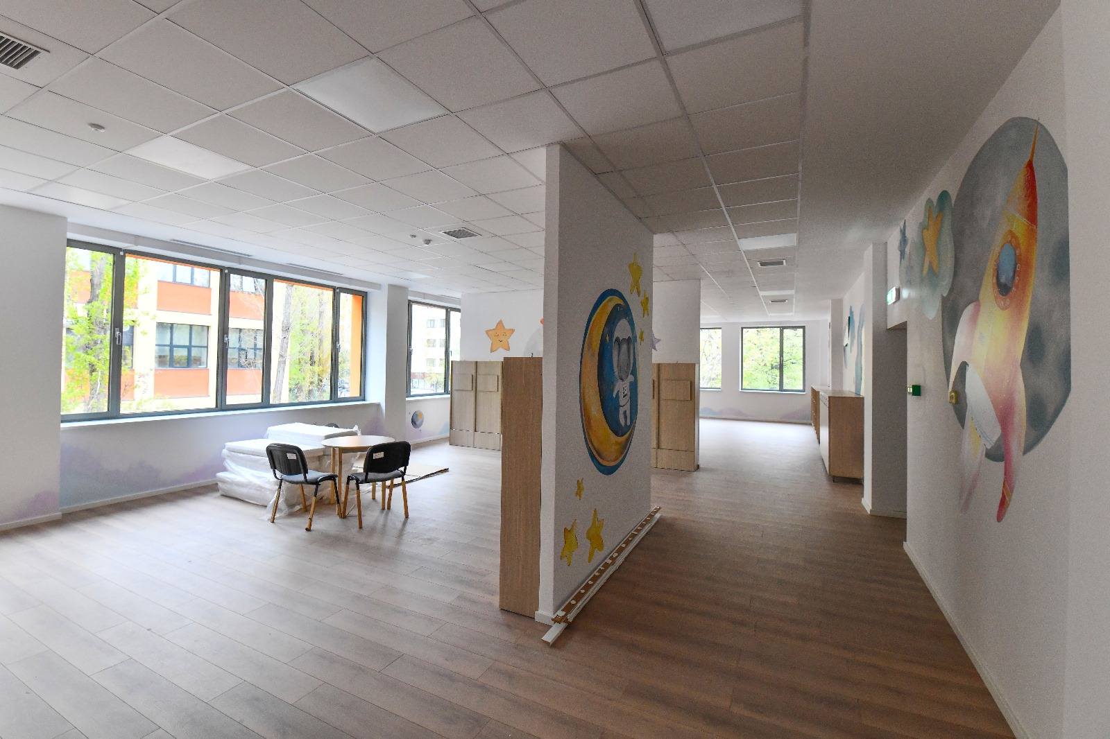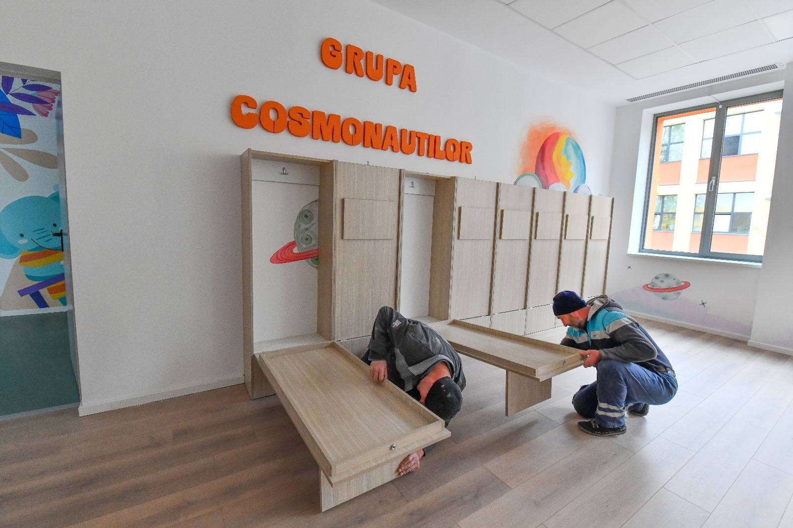 Sălile, care vor primi câte 20 de copii, sunt împărțite în două: o zonă cu pătuțuri, pentru dormit, și o alta cu măsuțe și scăunele, pentru joc și activități educative.