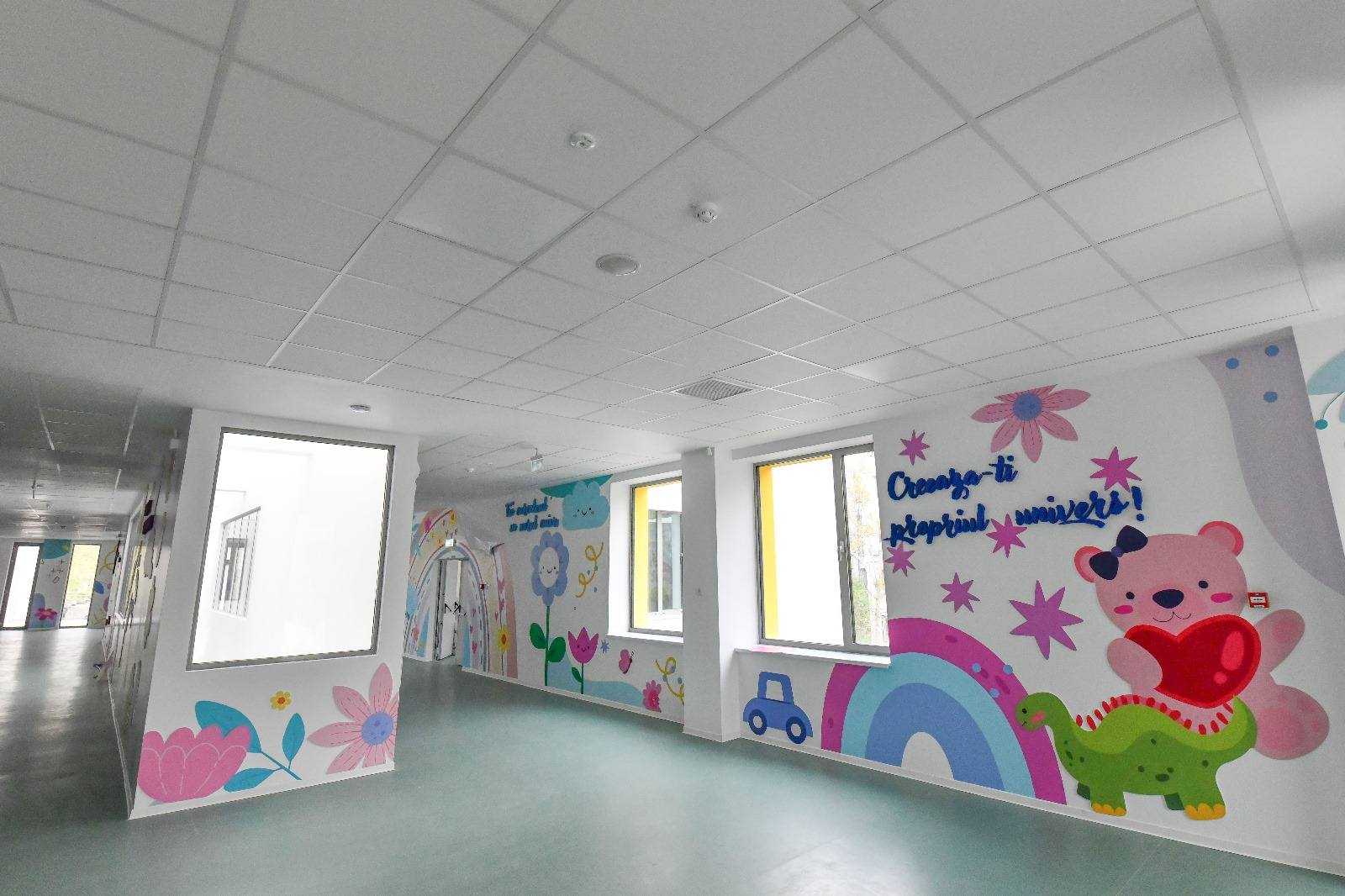 - Are panouri fotovoltaice și solare, lift, grupuri sanitare special făcute pentru prichindei, iar designul este printre cele mai frumoase din țară.