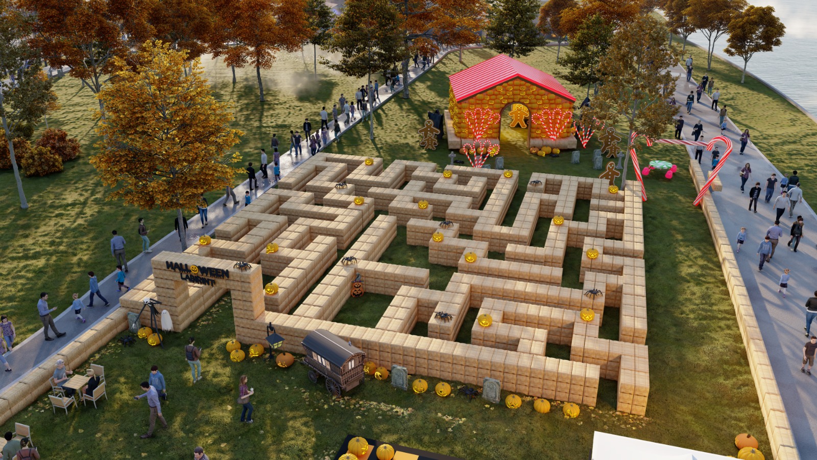 Vizitatorii intră în atmosfera de Halloween încă din zona Parcului Crângași. La baza digului, este o zonă cu vânzare, plină cu flori, plante și dovleci sculptați și pictați. Iar pe dig sunt statui vivante, costumate în tematică. Pe toată porțiunea promenadei amenajate, ce măsoară 10.000 de metri pătrați, vizitatorii trec pe sub arcade gigant, de câte cinci metri înălțime fiecare, decorate de către peisagiștii Primăriei Sectorului 6.