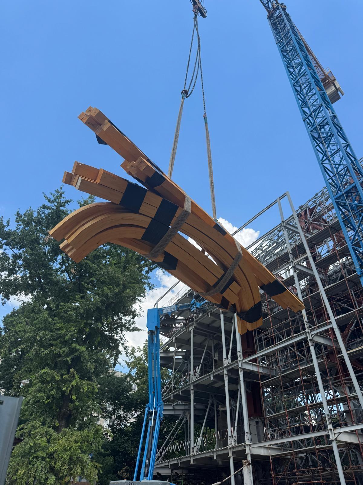 - De luni, 4 august, a început montarea arcelor de lemn stratificat.