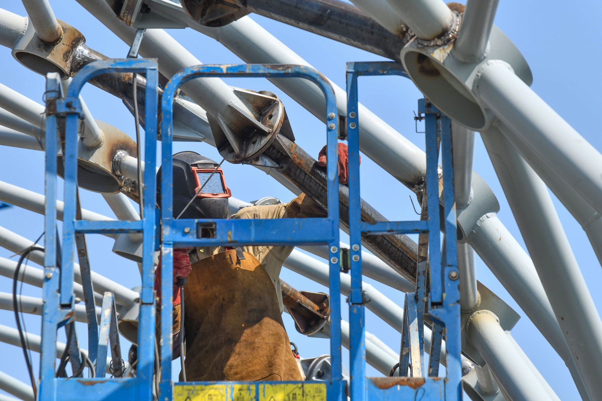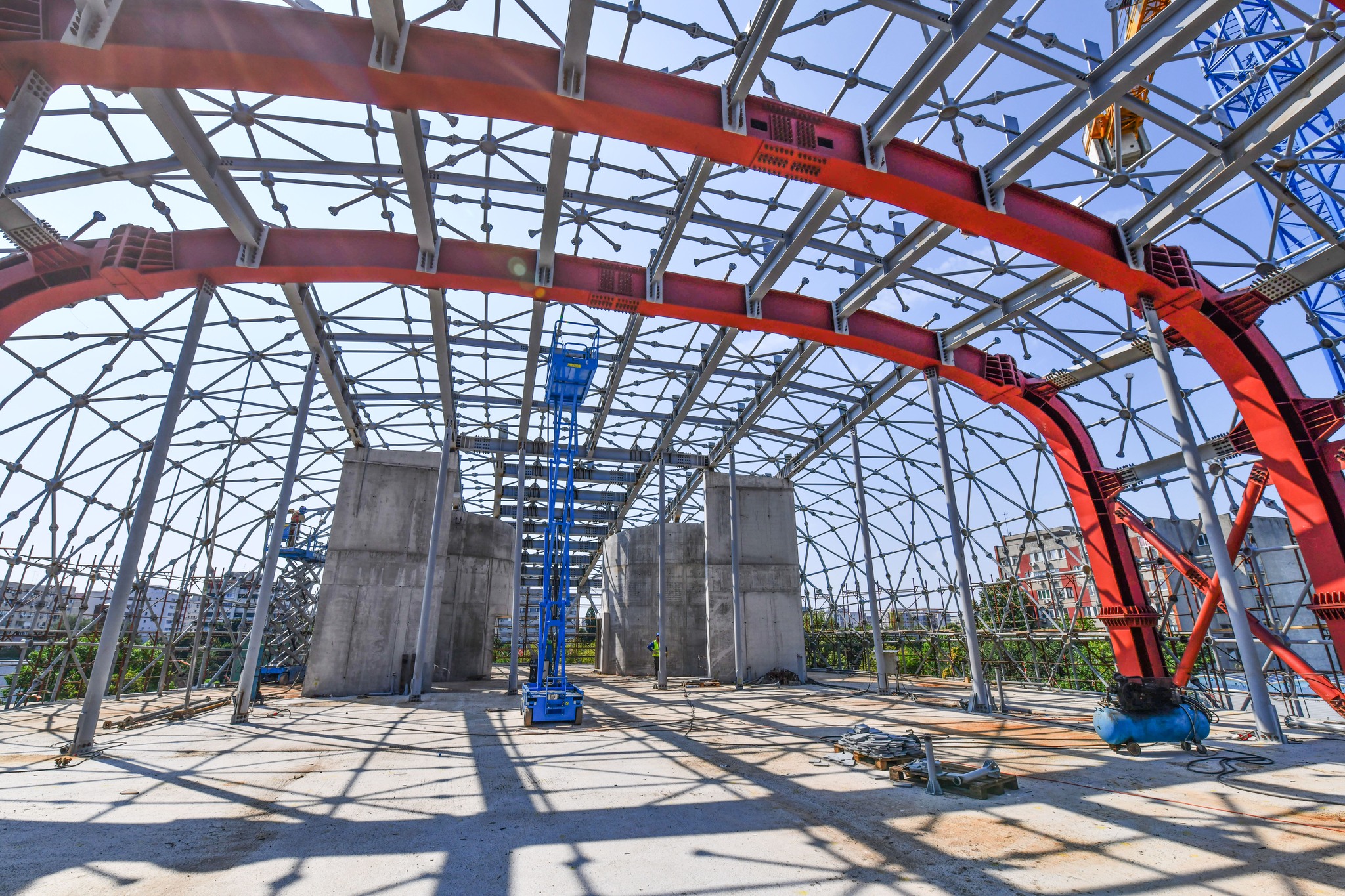 „Spre exemplu, etapa de montare a arcelor de lemn durează până la sfârșitul lui octombrie, dar în același timp începem și cu astereala din spate, și cu tabla. Sperăm ca până în decembrie să terminăm tot învelișul clădirii”, explică inginerii de pe șantier.