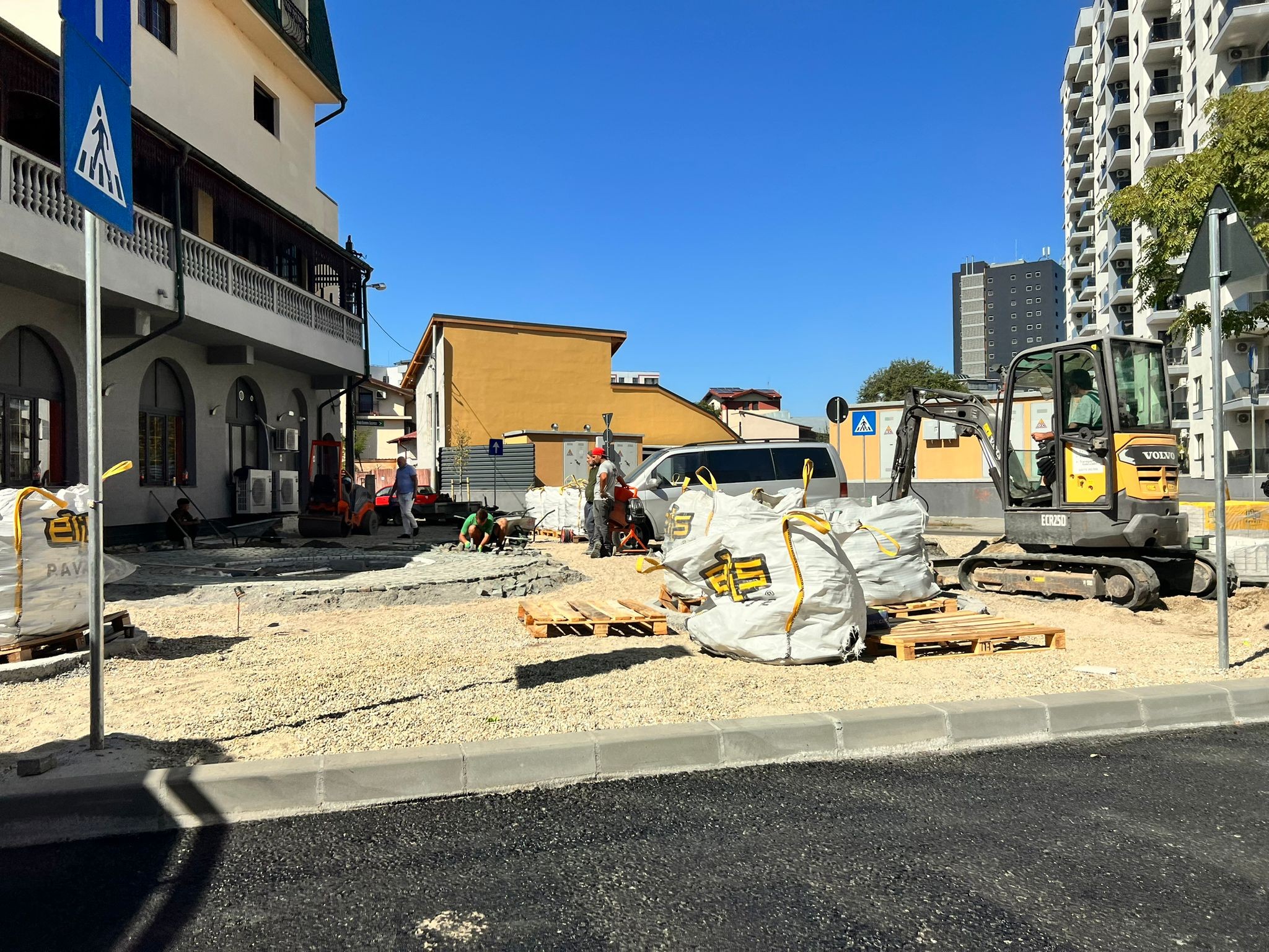 Totodată, avansăm treaba pe strada Ștefan Marinescu. Suntem aproape gata cu trotuarele, apoi turnăm betonul și asfaltul.