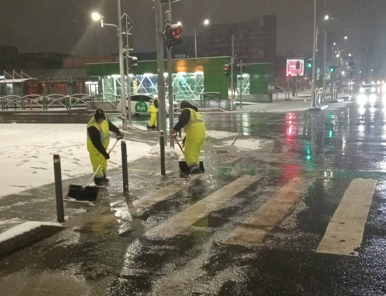 Pe străzi toată noaptea la deszăpezire. Am curățat trotuare, stații STB, treceri de pietoni, străduțe și bulevarde.