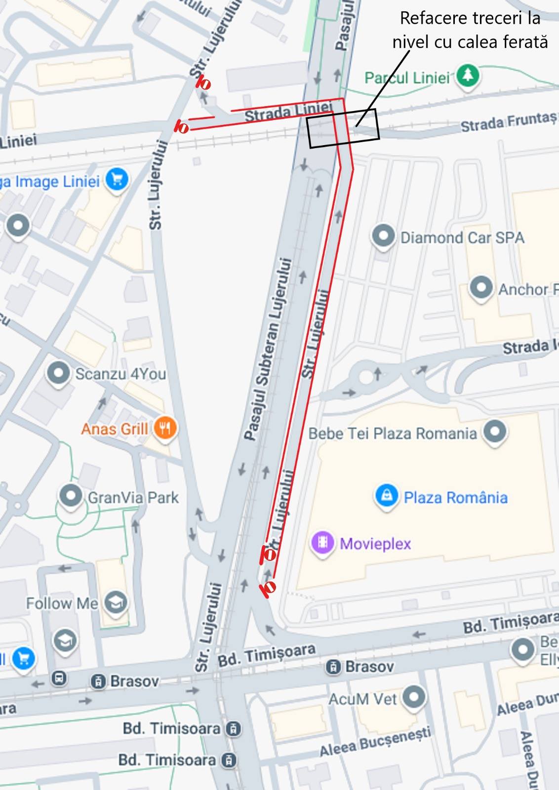 • Strada Lujerului - dinspre Bd. Timișoara până la intersecția cu Strada Liniei, în fața parcului.