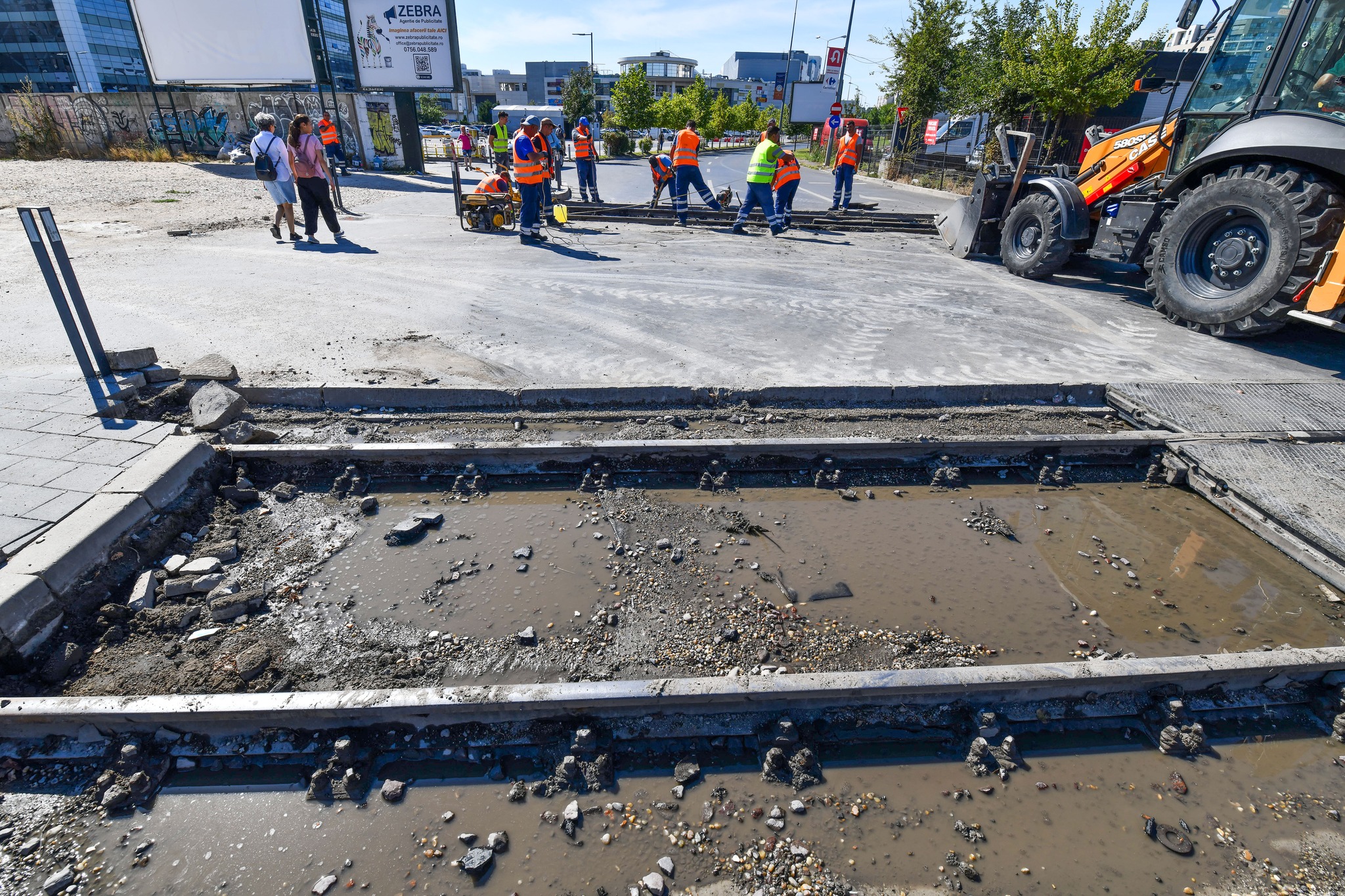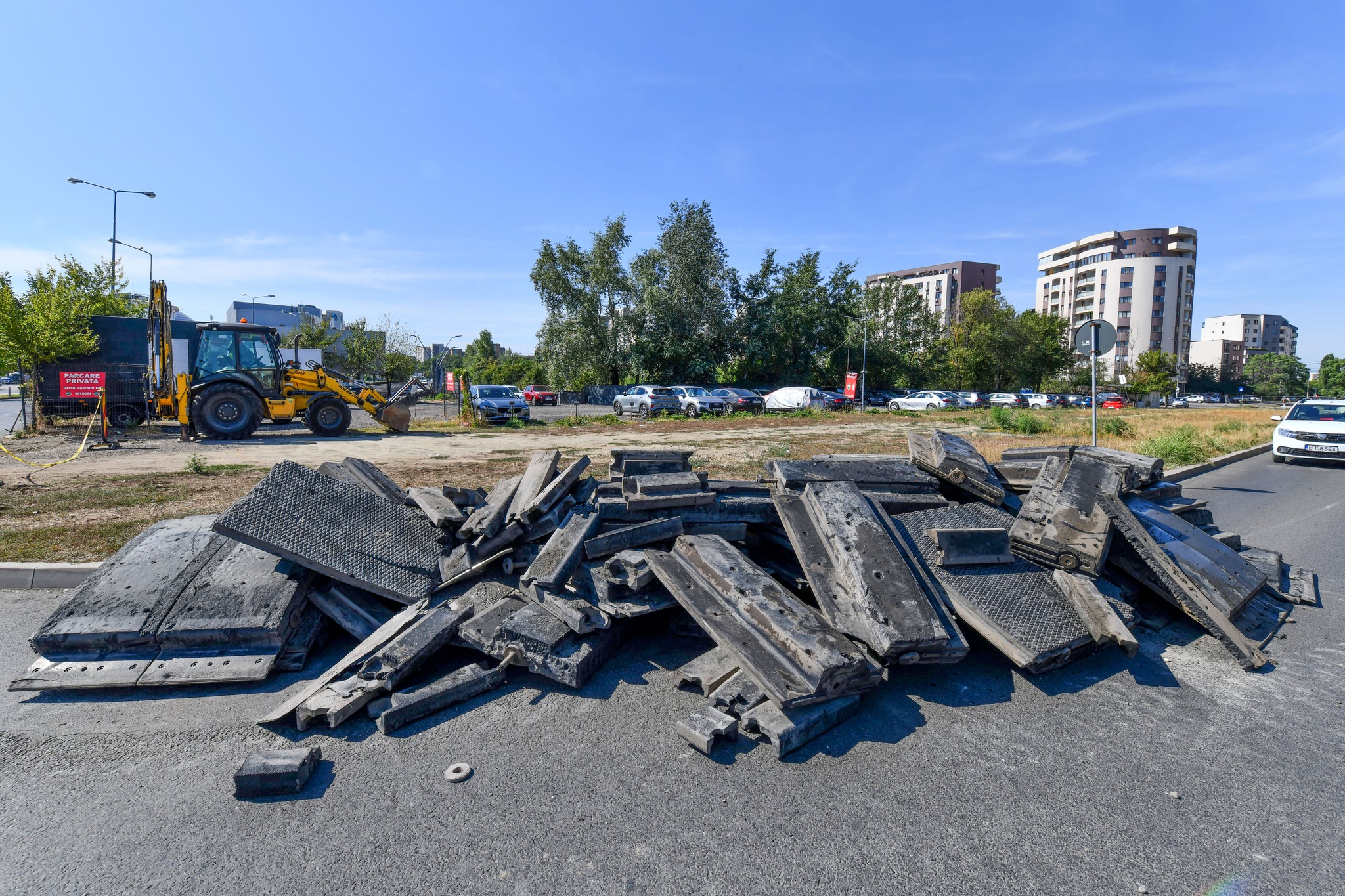 Muncitorii și utilajele au intrat în forță în marți dimineață și au scos dalele și traversele. Vor umple spațiul cu pietriș, apoi vor acoperi calea ferată cu dale noi, elastice, în care să nu vă mai rupeți mașinile.