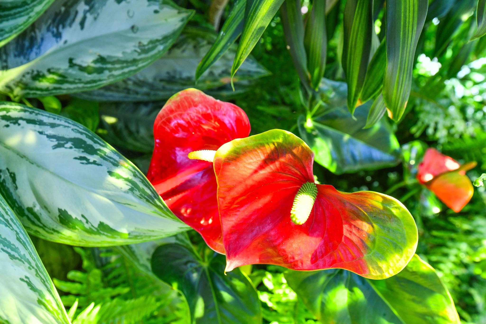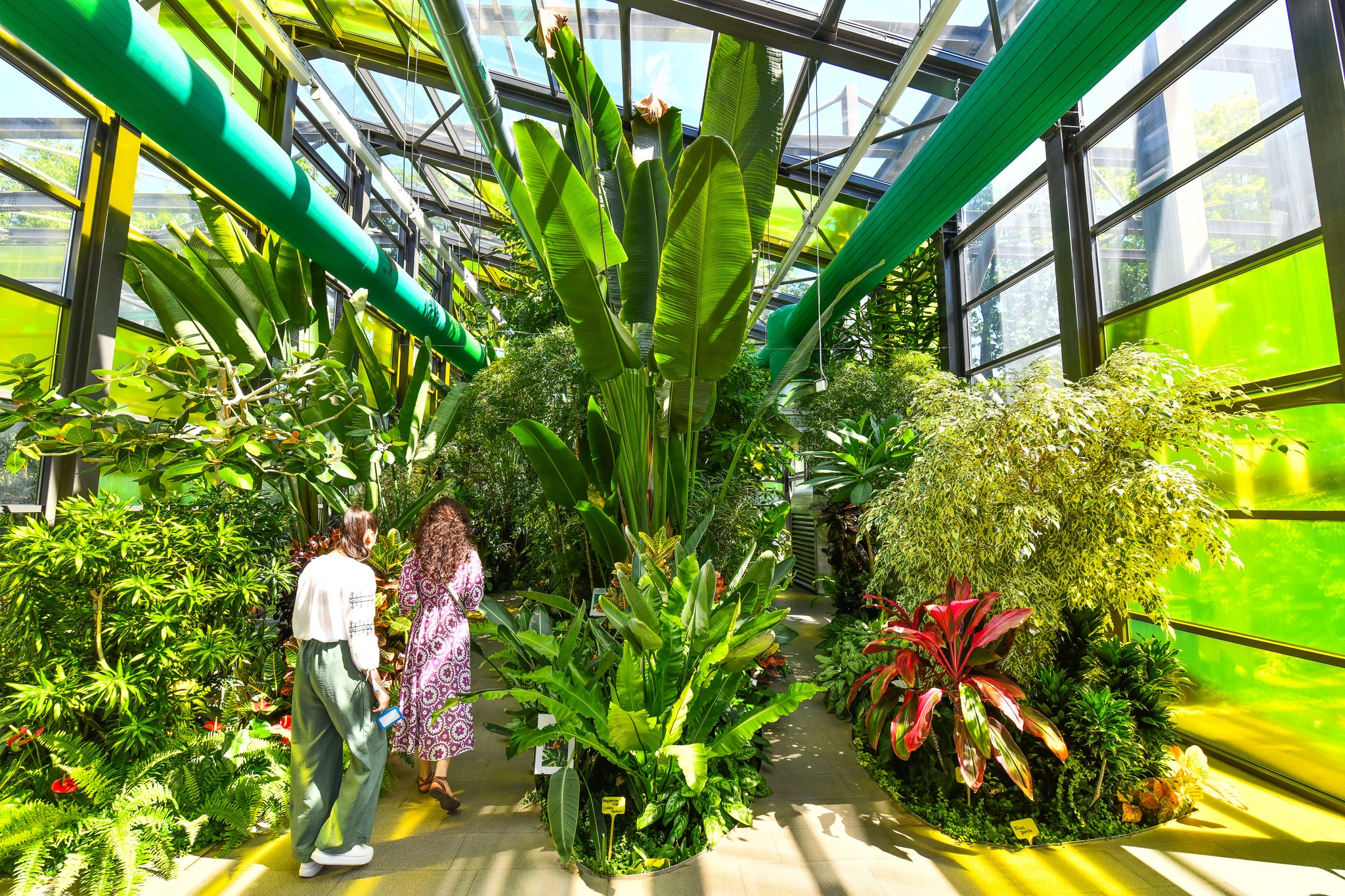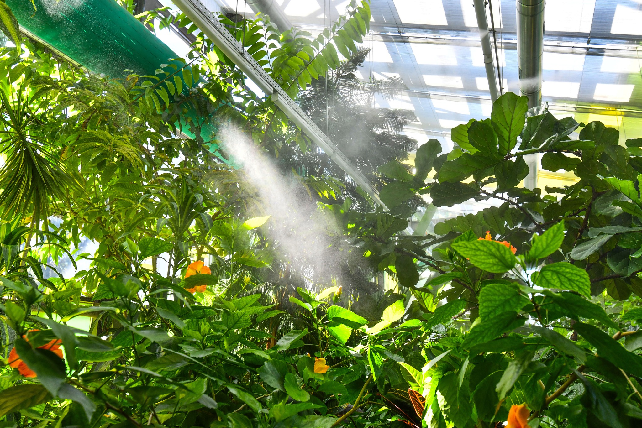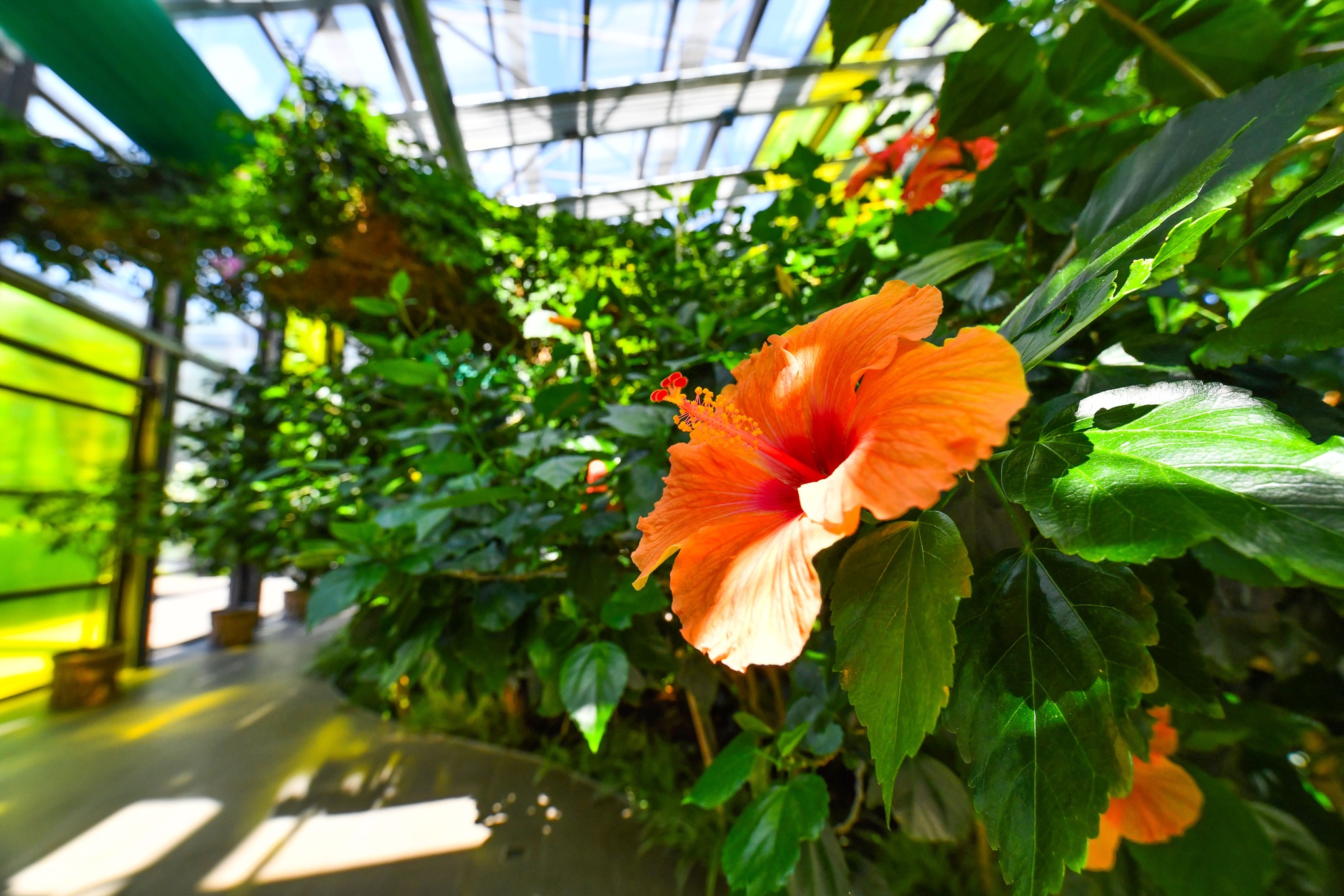 - Pavilionul tropical umed: 23-25 de grade. Sunt înflorite: crinul păcii, hibiscusul sau trandafirul chinezesc, floarea flamingo (arată ca o cală), spinul auriu.