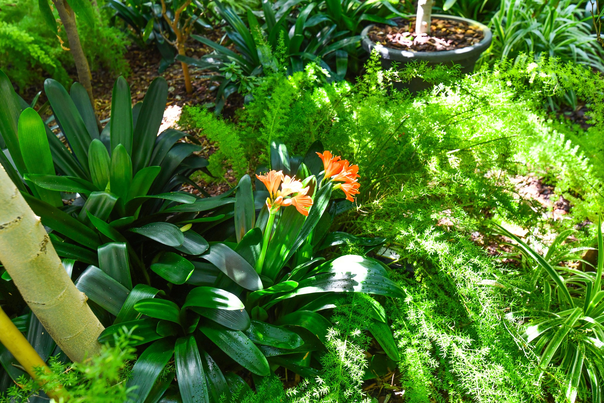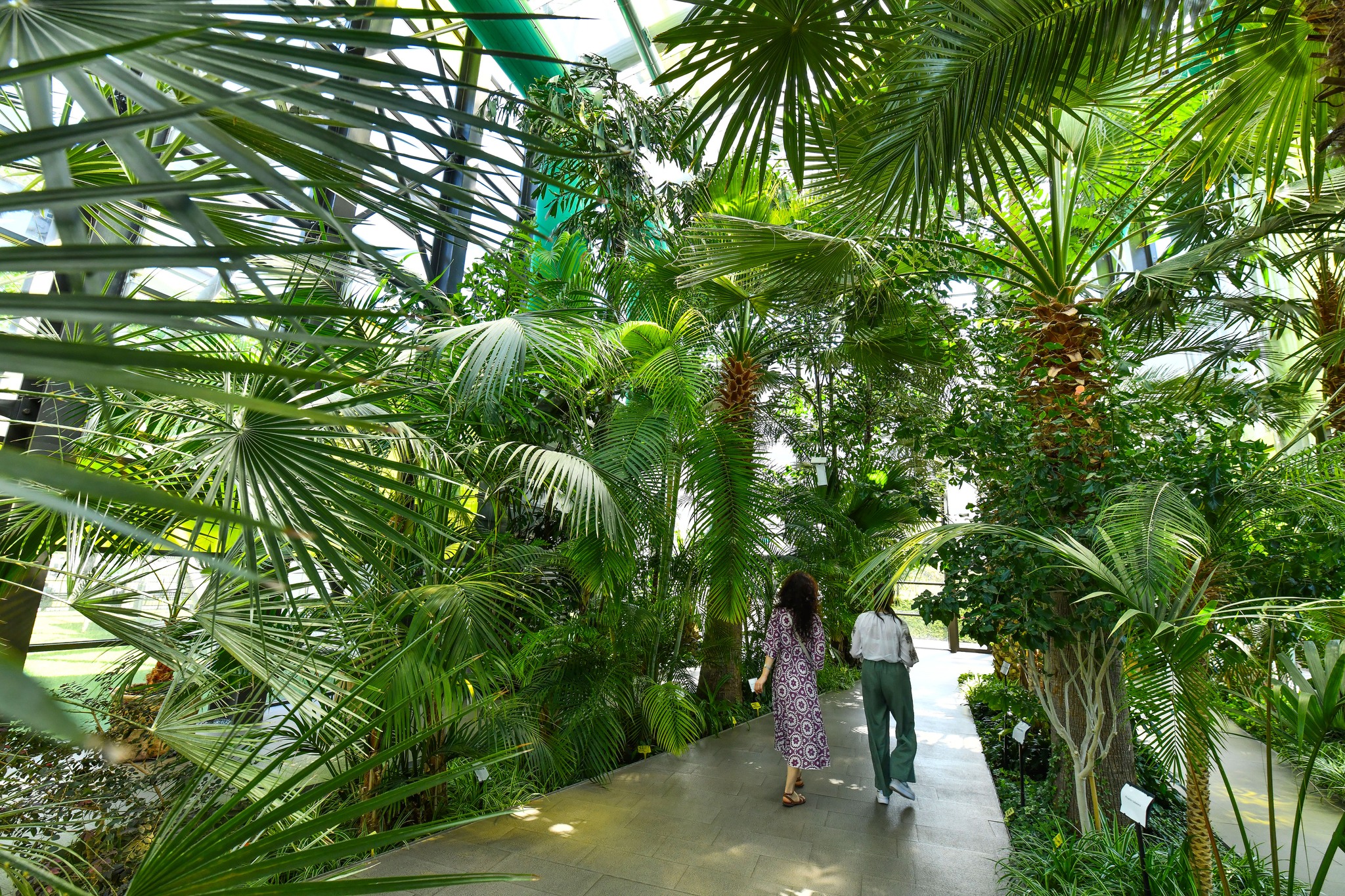 - Pavilionul cu palmieri: 18-24 de grade. Este un decor verde, cu palmieri înalți de peste 10 metri, printre care sunt flori albe de Crinul păcii.