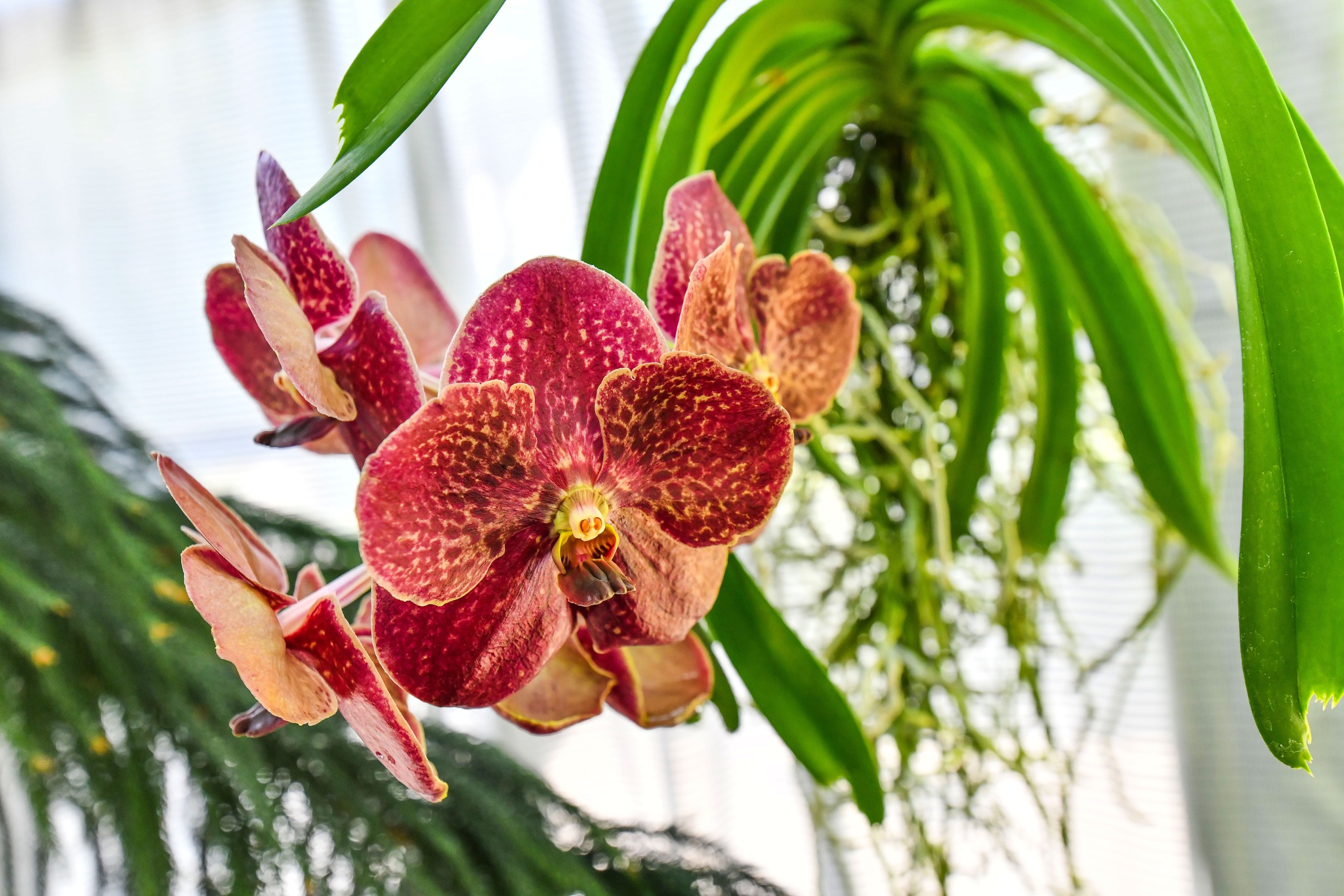 - Pavilionul ecuatorial: 25 de grade. Este plin aici de orhidee înflorite, crini roșii, dar și de plante cu frunze colorate.
