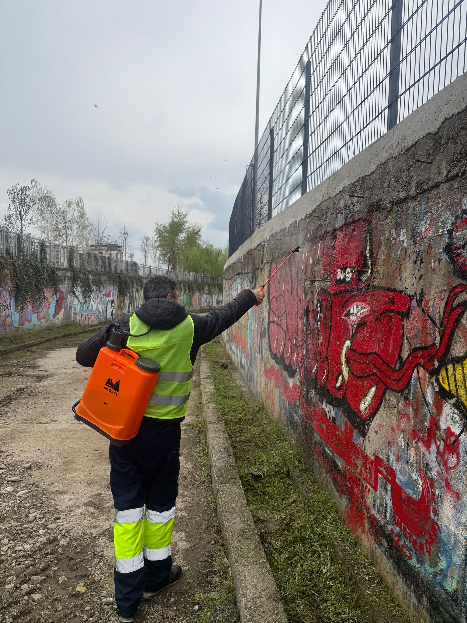 - Pe o lungime de 260 de metri, am colectat deșeurile abandonate, am curățat vegetația crescută printre betoane și la final am dezinfectat tot perimetrul cu clor.