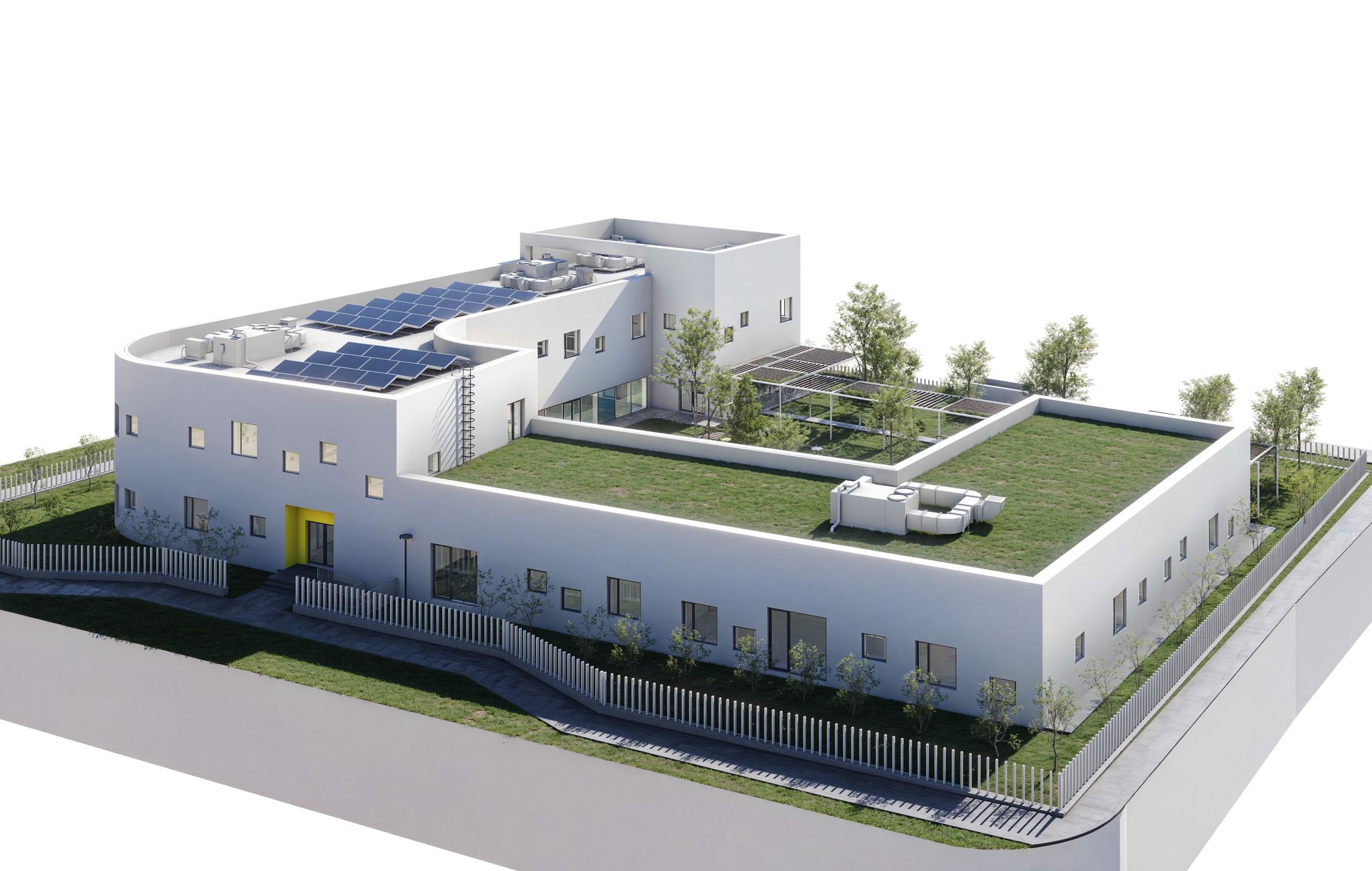 Va fi o clădire „verde” panouri fotovoltaice și solare, sistem de climatizare cu pompe de căldură, spații verzi, chiar pe acoperiș, locuri de joacă moderne, foișoare umbroase.