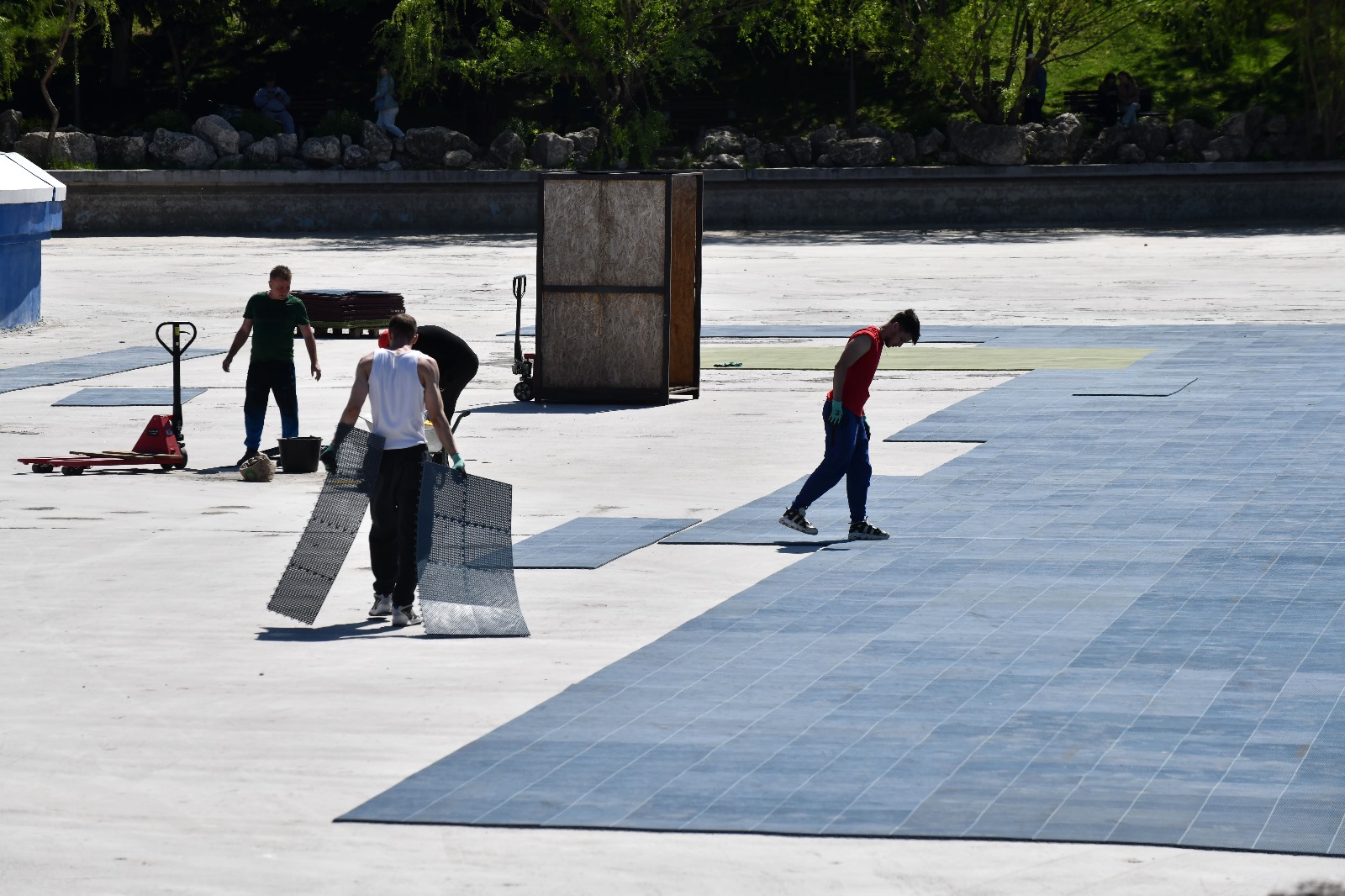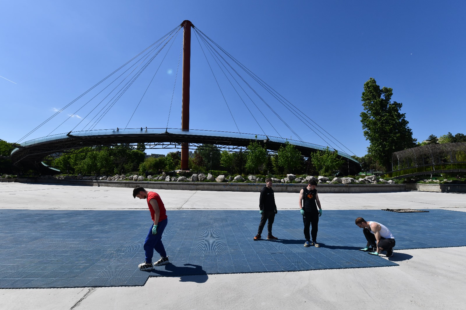 Terenurile de baschet sunt gata de luni, 28 aprilie, iar marţi se montează cel de volei.