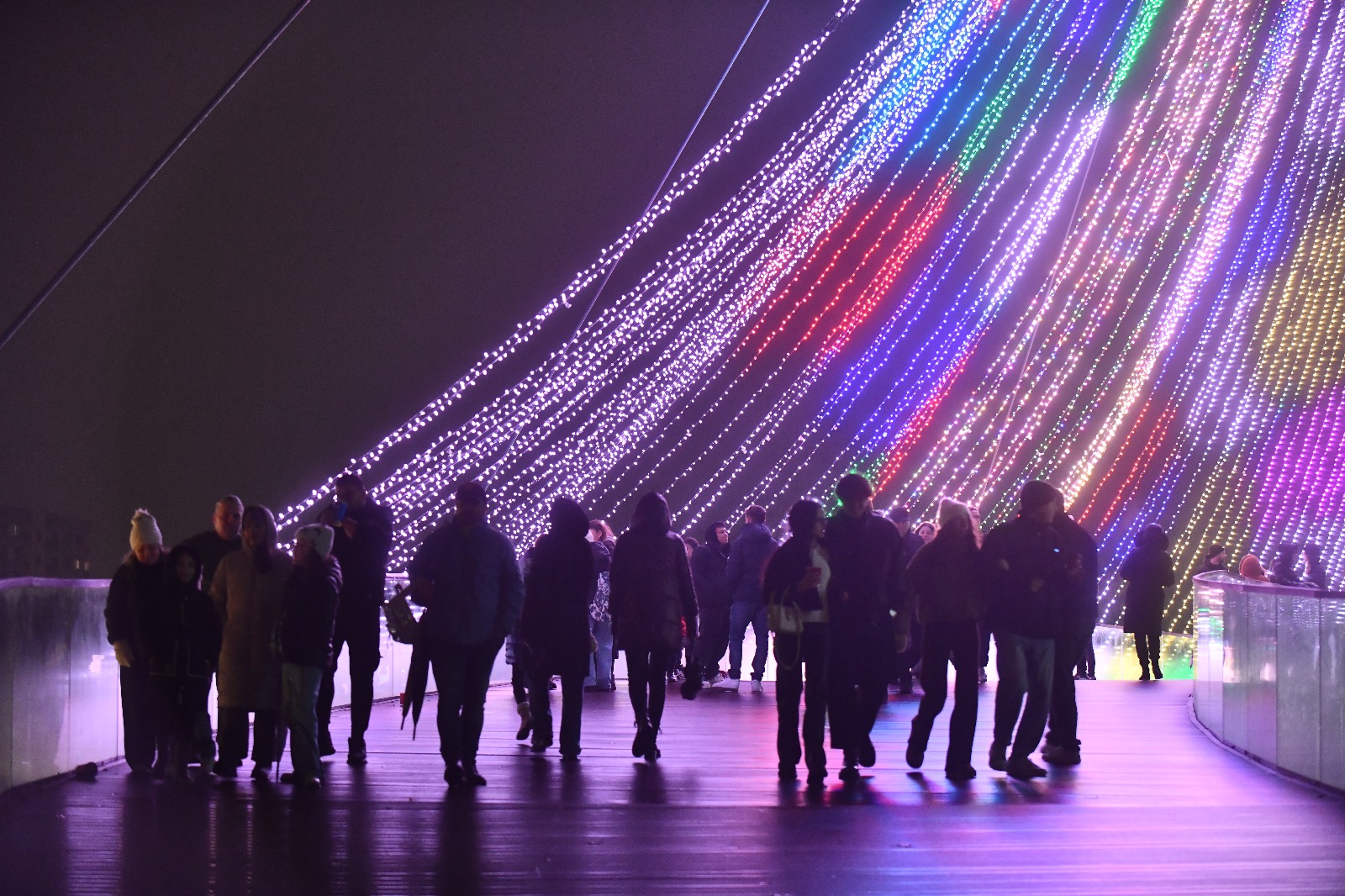 Are o lungime de peste 100 de metri, suspendată pe podul hobanat, emblema parcului. Perdeaua de lumini e compusă din 200.000 de leduri interactive, care formează jocuri de lumini, în 23 de moduri. E un adevărat spectacol.
