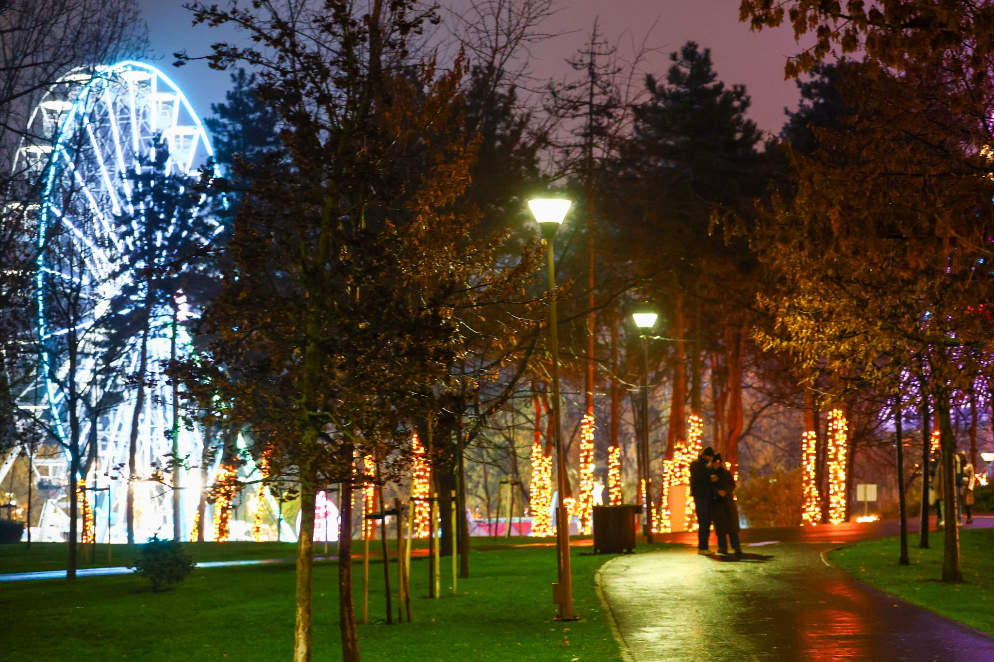 Întreg Parcul Drumul Taberei este decorat cu 400.000 de beculețe, copacii strălucesc, sunt zeci de ornamente sub formă de steluțe, reni, calești, ursuleți.