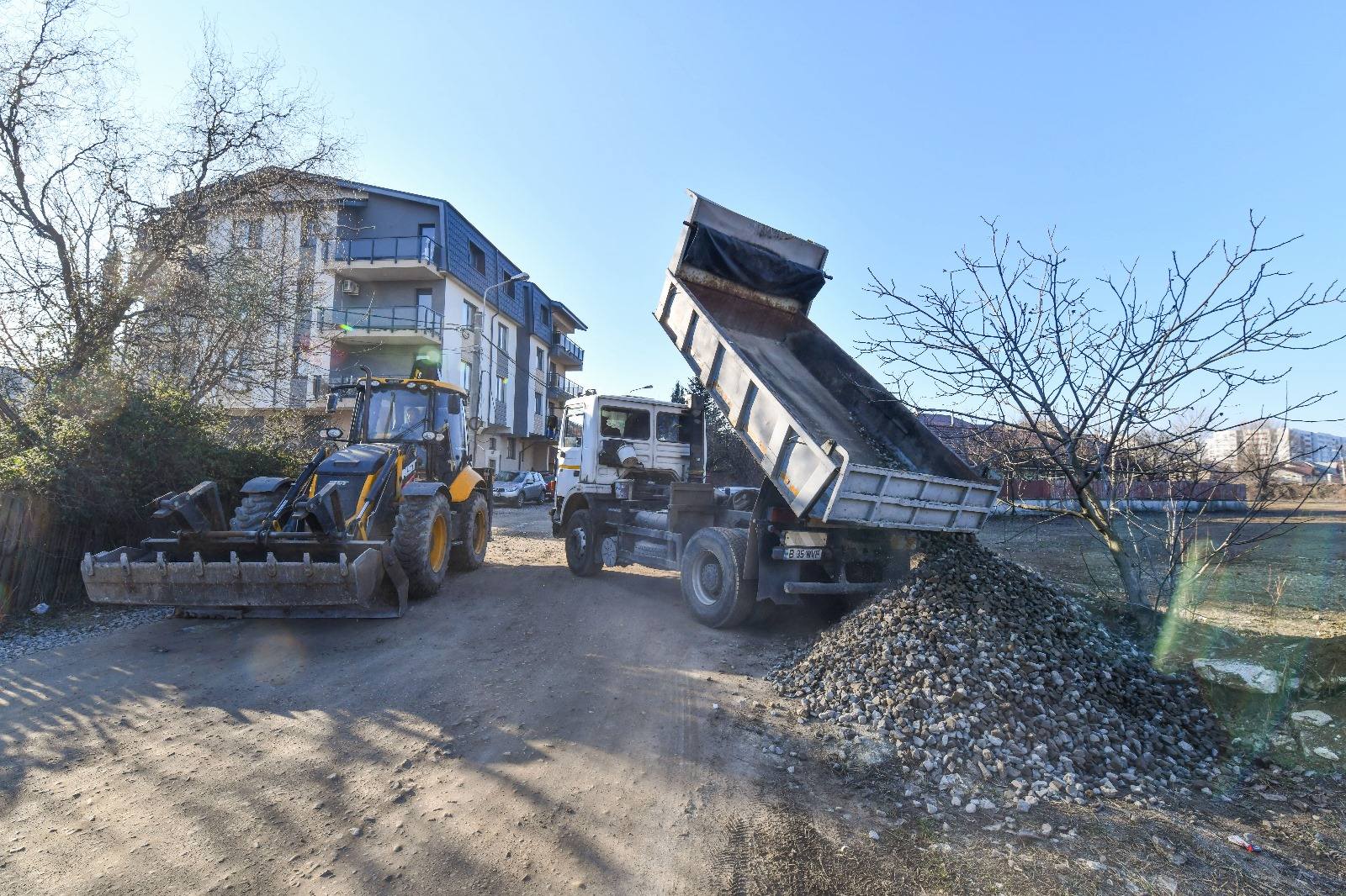 Colegii de la ADPDU Sector 6 vin periodic să reprofileze, să niveleze și să toarne pietriș. Pe 3 ianuarie au fost acolo, iar astăzi au luat-o de la capăt, după ploi.