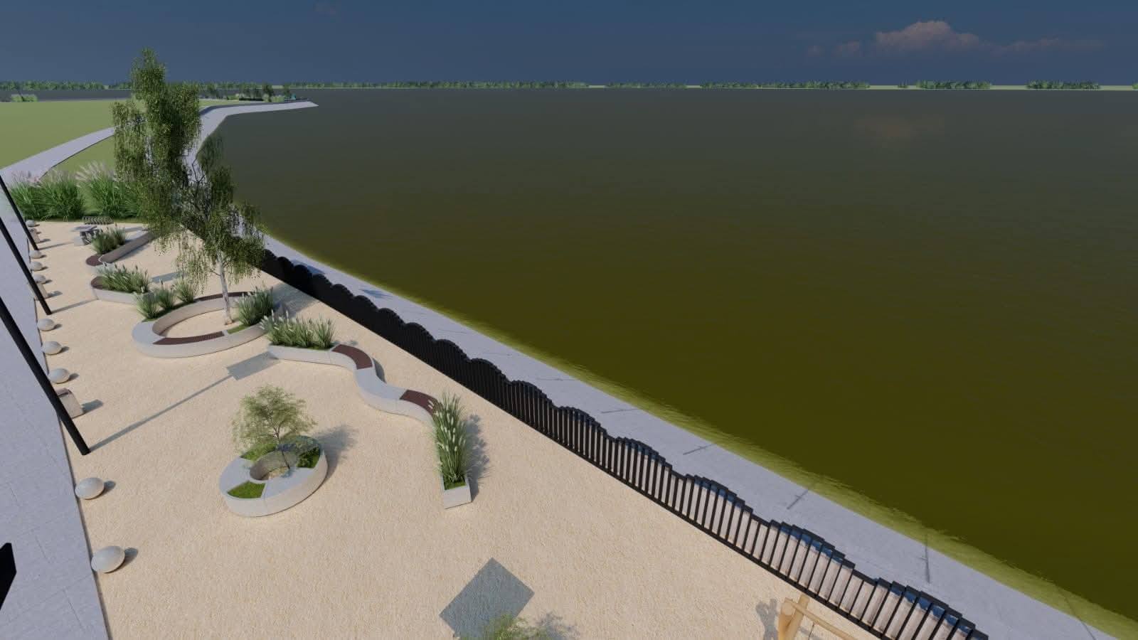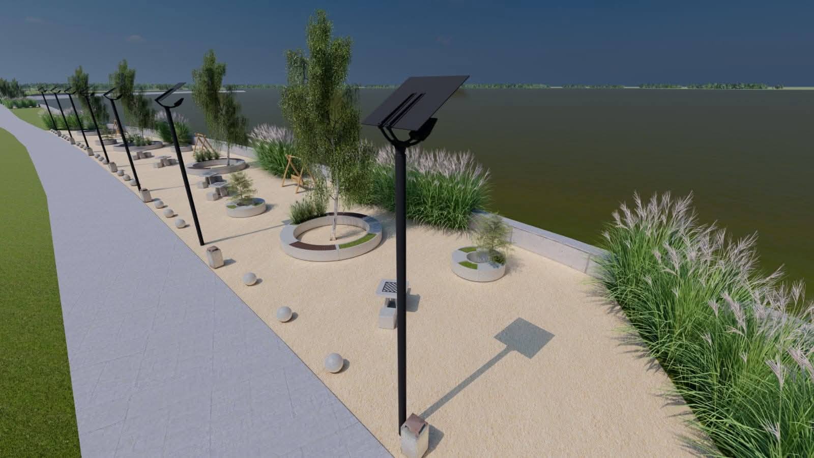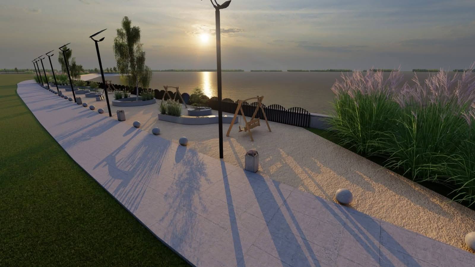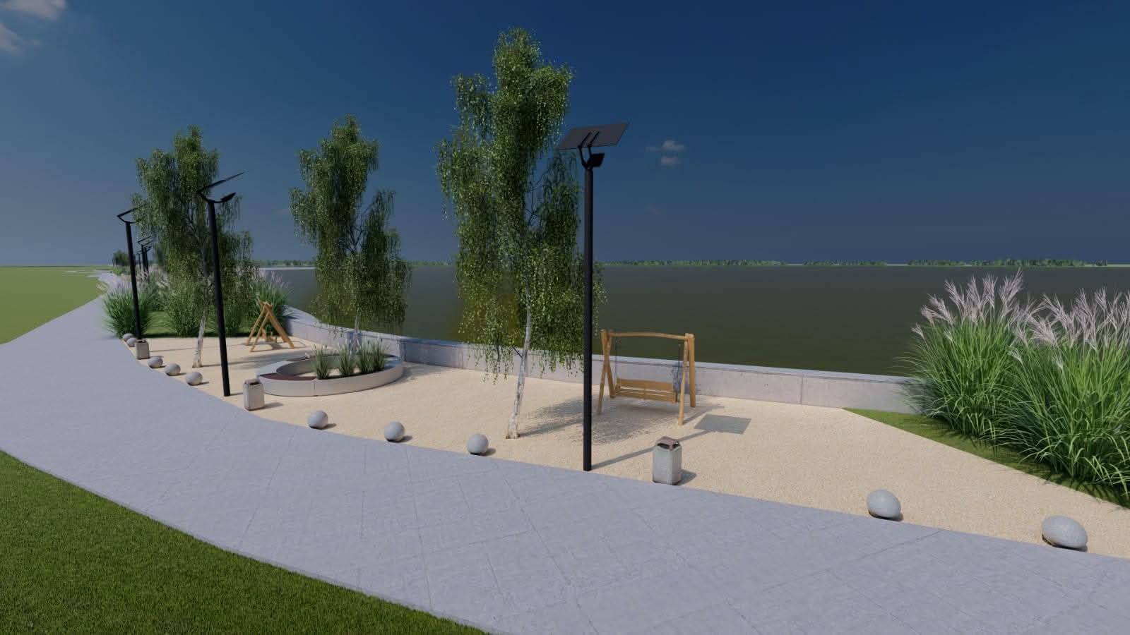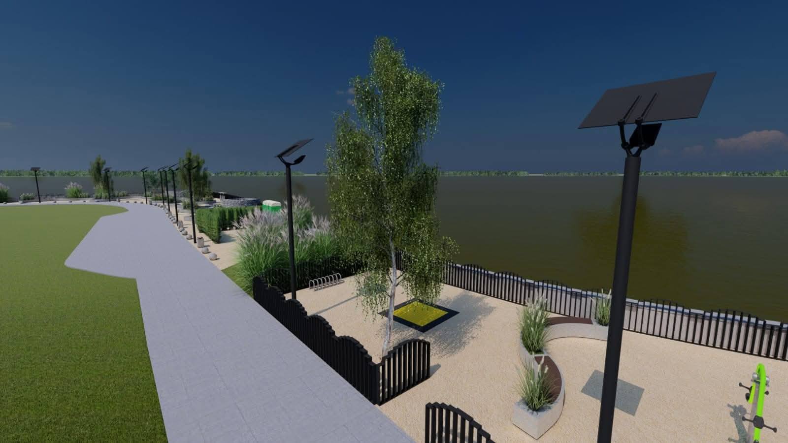 - 1,3 kilometri de promenadă și, din loc în loc, vor fi prevăzute zone de recreere și de odihnă, locuri de joacă pentru copii împrejmuite, iluminat public, dar și amenajări peisagistice/jardiniere;