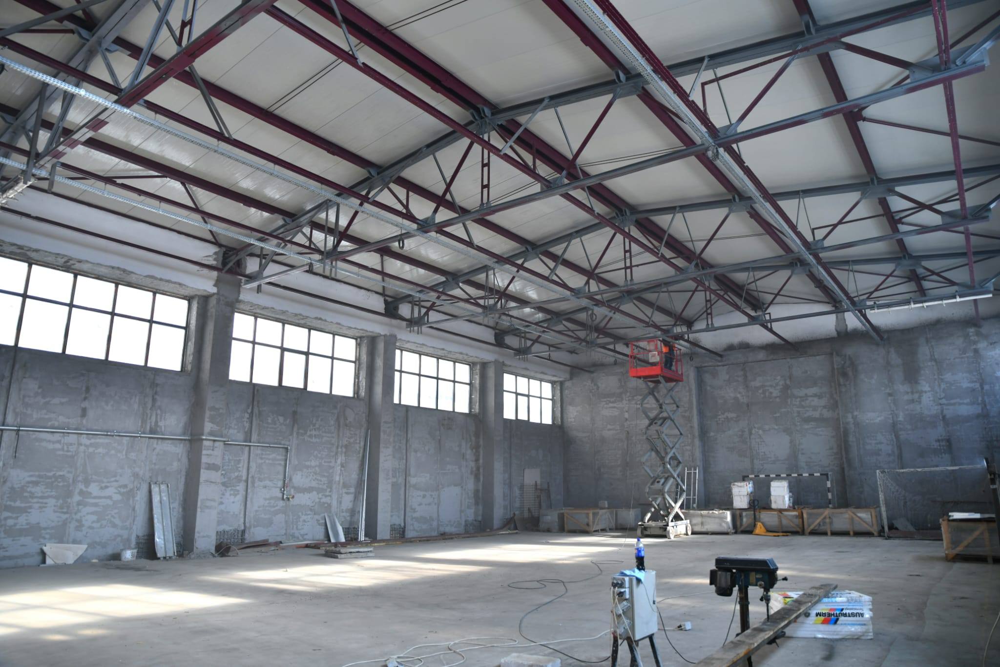 Tot aici, lucrăm la construirea unei săli de sport. Și ea va fi gata din toamnă. Avem echipamentele pentru ea în depozit, dar și întregul mobilier nou pentru clase și laboratoare, cumpărat din bani obținuți din PNNR.