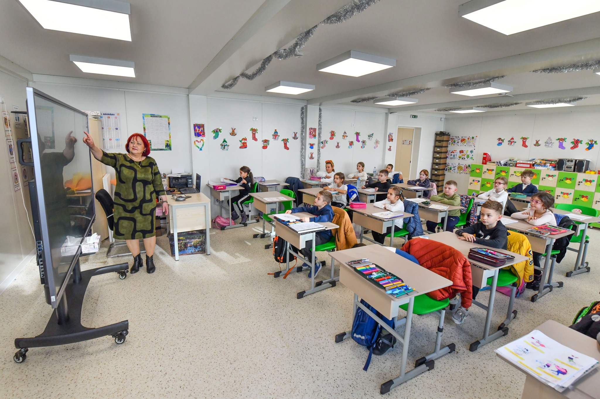 În plus, în fiecare școală se modernizează câte un laborator de informatică – are tablă smart de 86 inch, sisteme all in one, imprimantă, scanner, bănci și scaune noi.