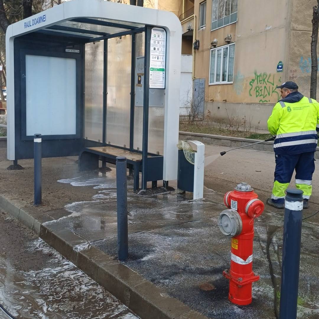 Și tot alături de Salubrizare Sector 6, am ieșit la spălat stații STB, trotuare, stâlpișori, mobilier urban.