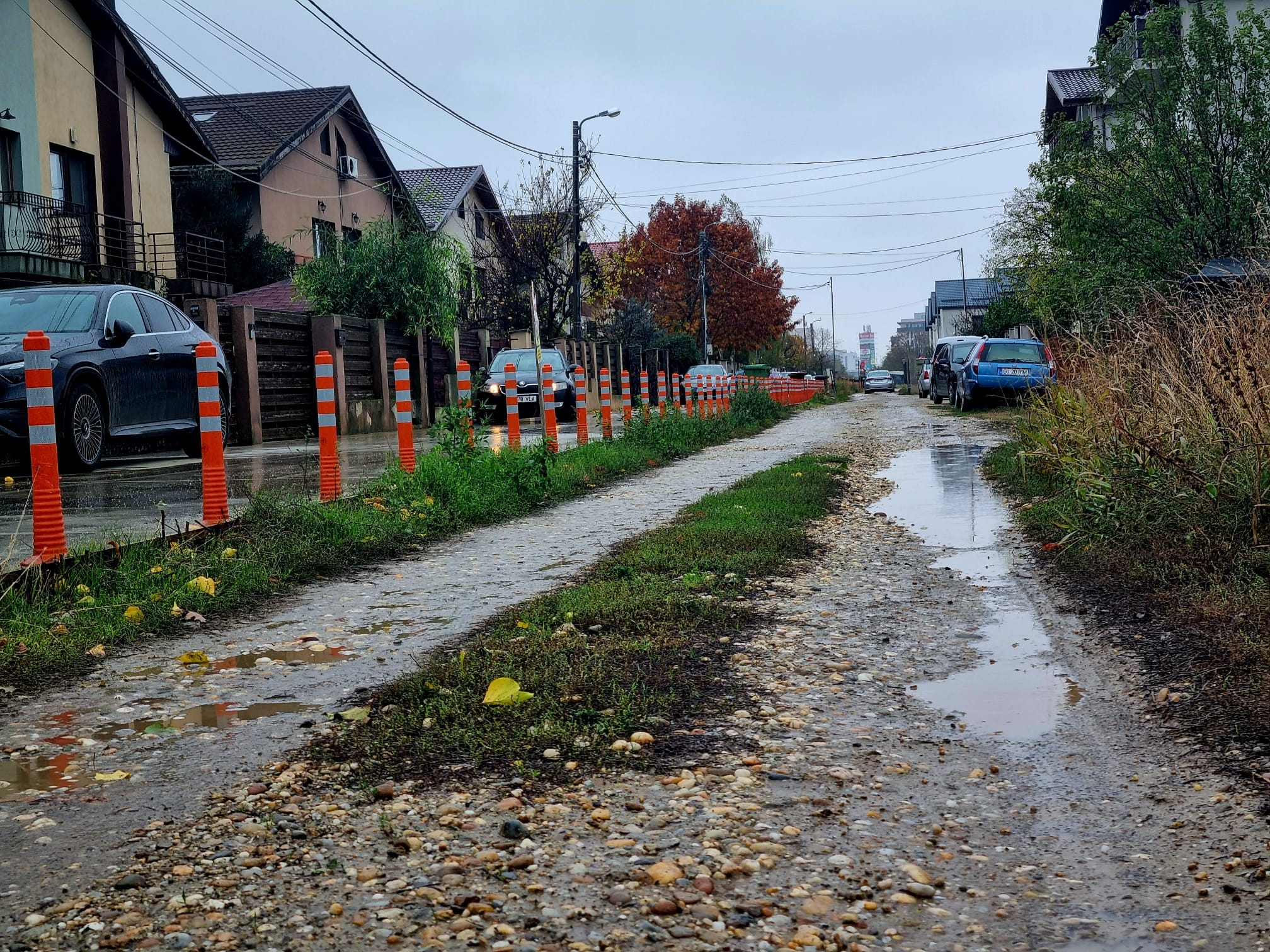 Este un drum de pământ, cu gropi, fără trotuare, iluminat, semne de circulație sau alte facilități.