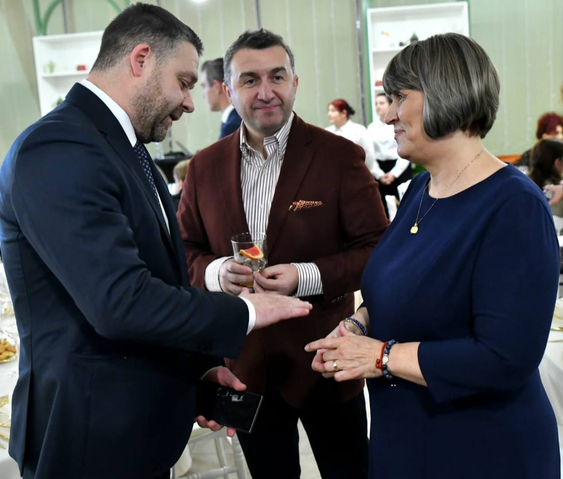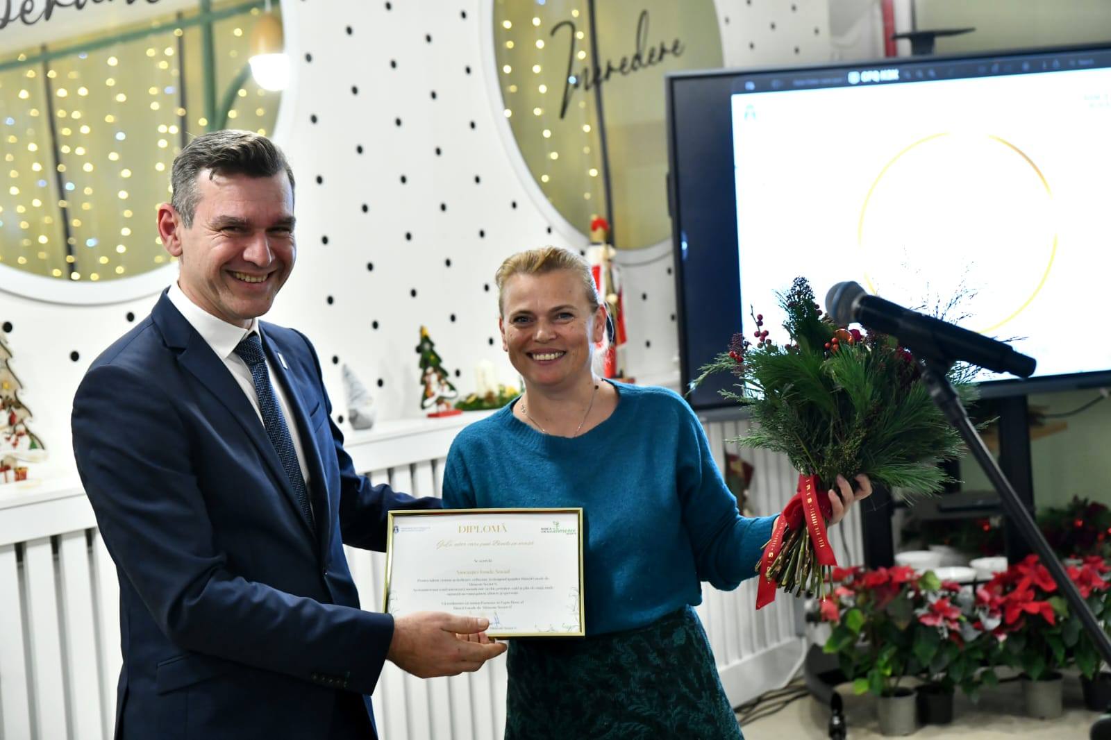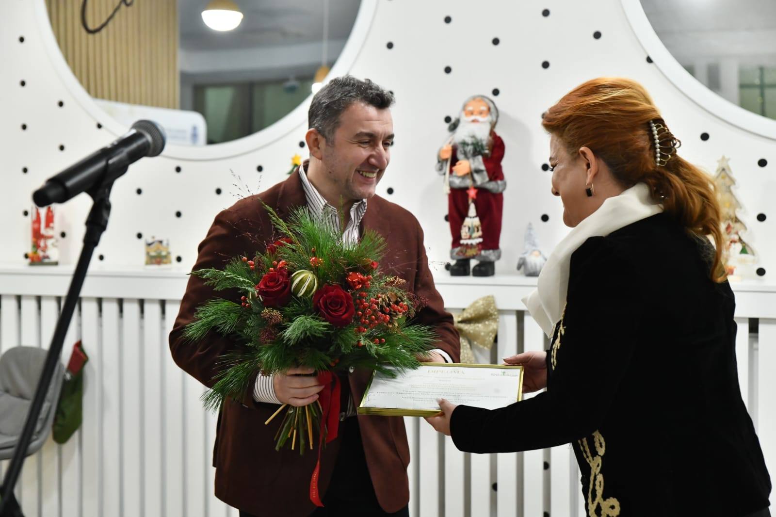Colindătorii de la Corul Nostalgia au primit cadouri de la primar și viceprimar, iar partenerii - diplome și flori. Ca la gală.