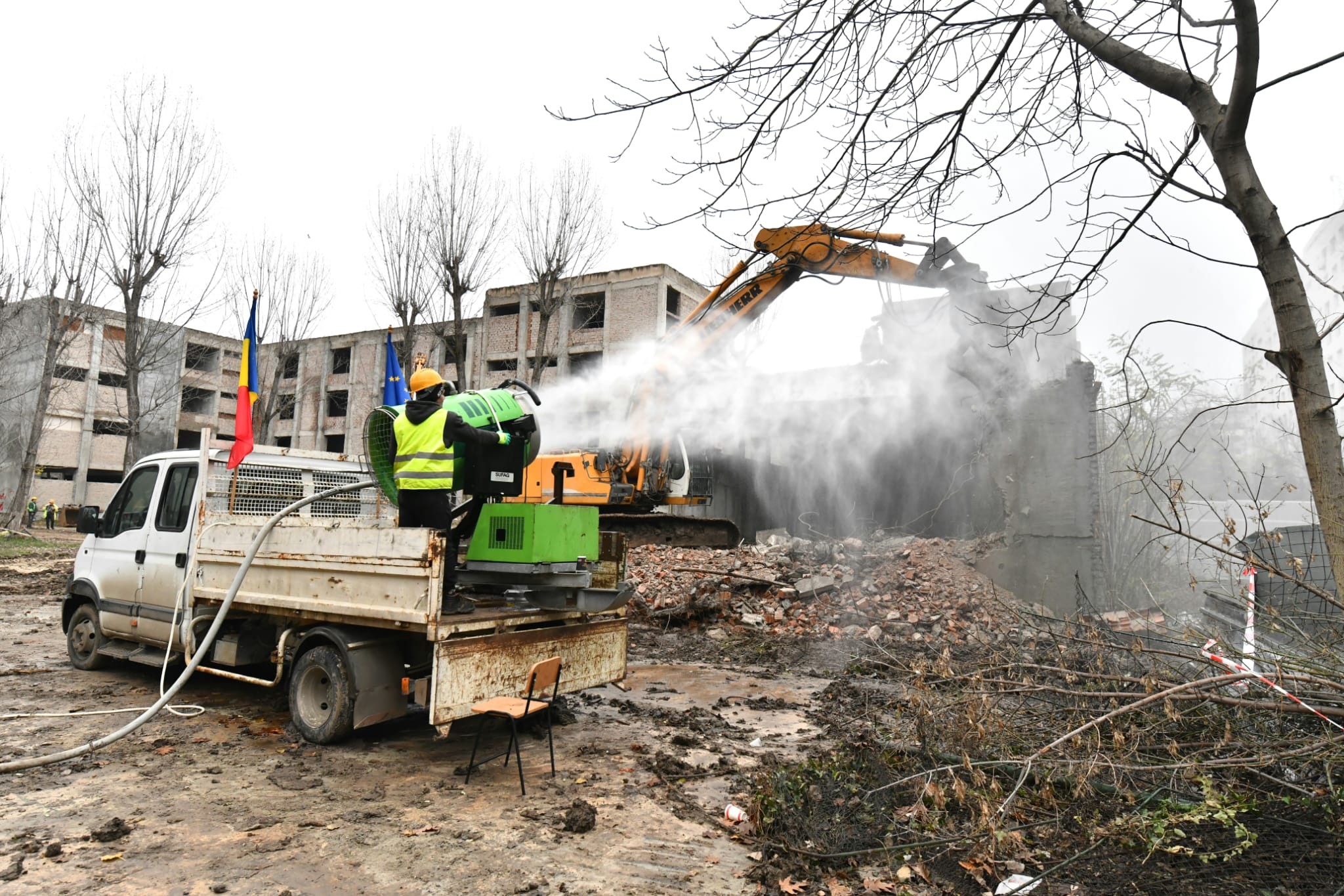 - de asemenea, lucrările de demolare se fac cu tunurile de apă pornite, rolul lor este să prevină ridicarea prafului.
