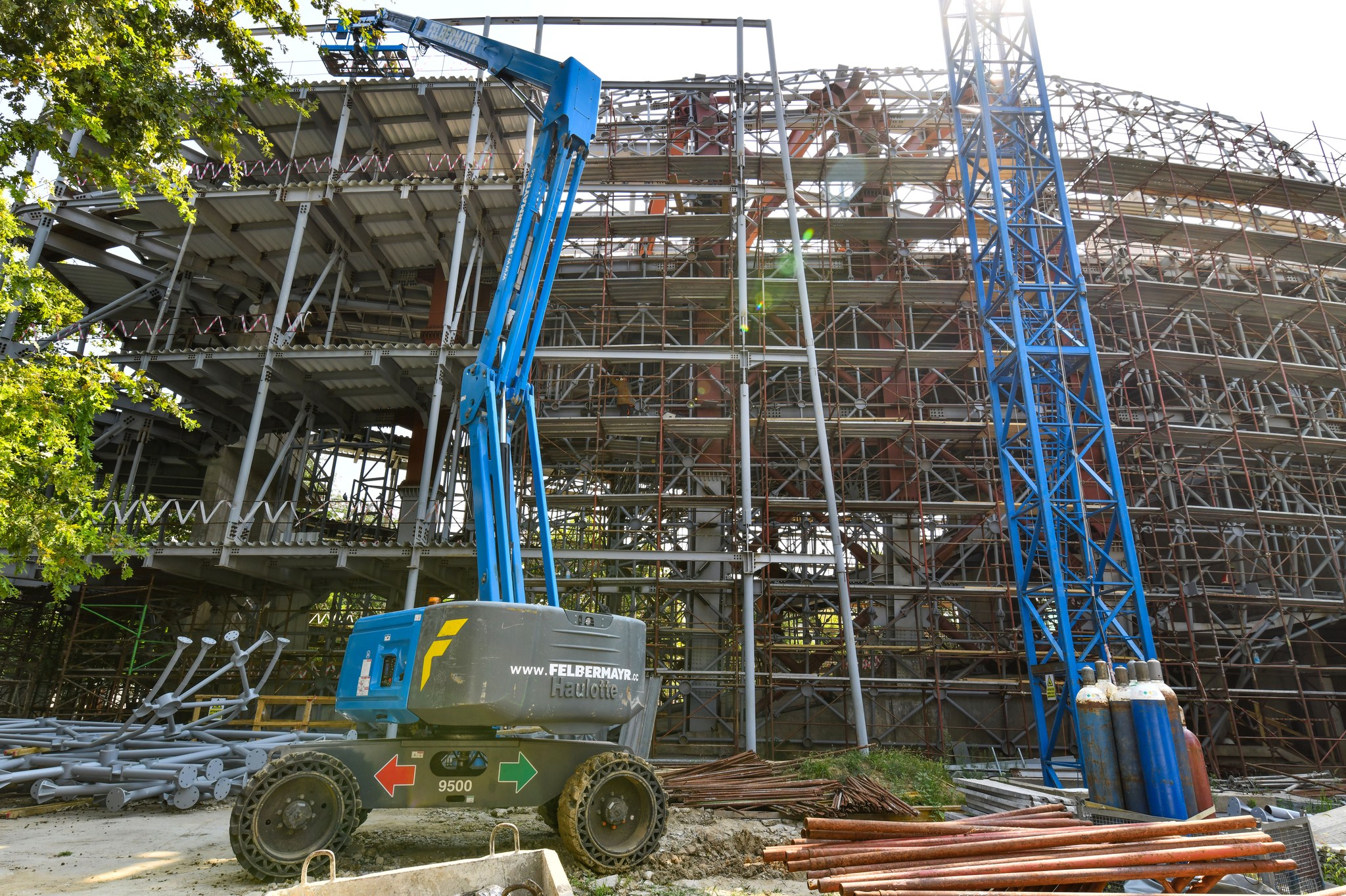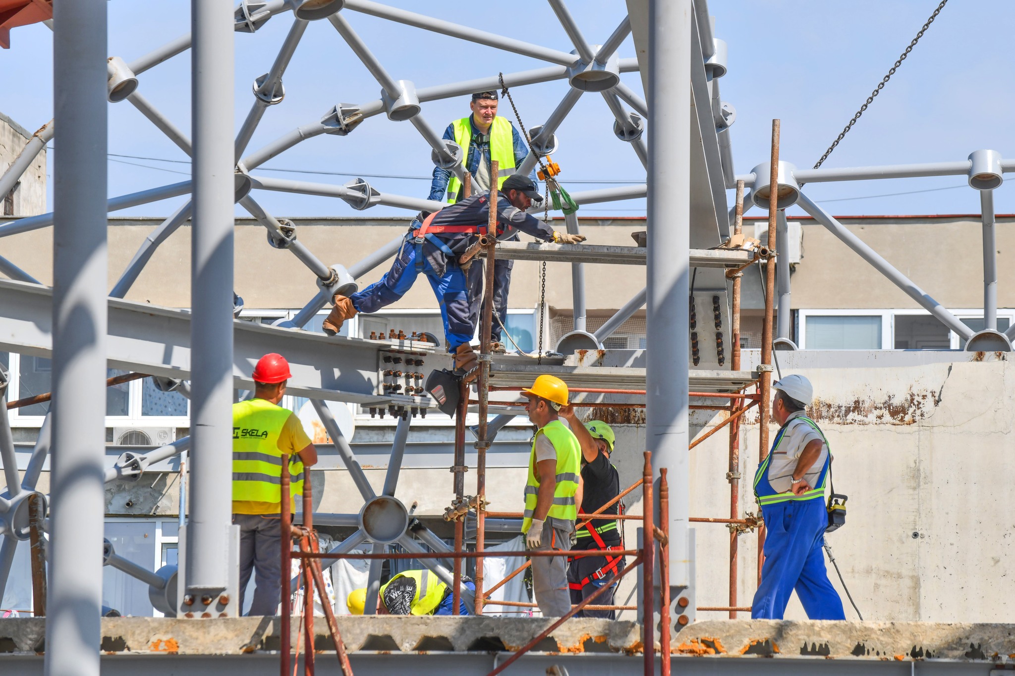 „Spre exemplu, etapa de montare a arcelor de lemn durează până la sfârșitul lui octombrie, dar în același timp începem și cu astereala din spate, și cu tabla. Sperăm ca până în decembrie să terminăm tot învelișul clădirii”, explică inginerii de pe șantier.