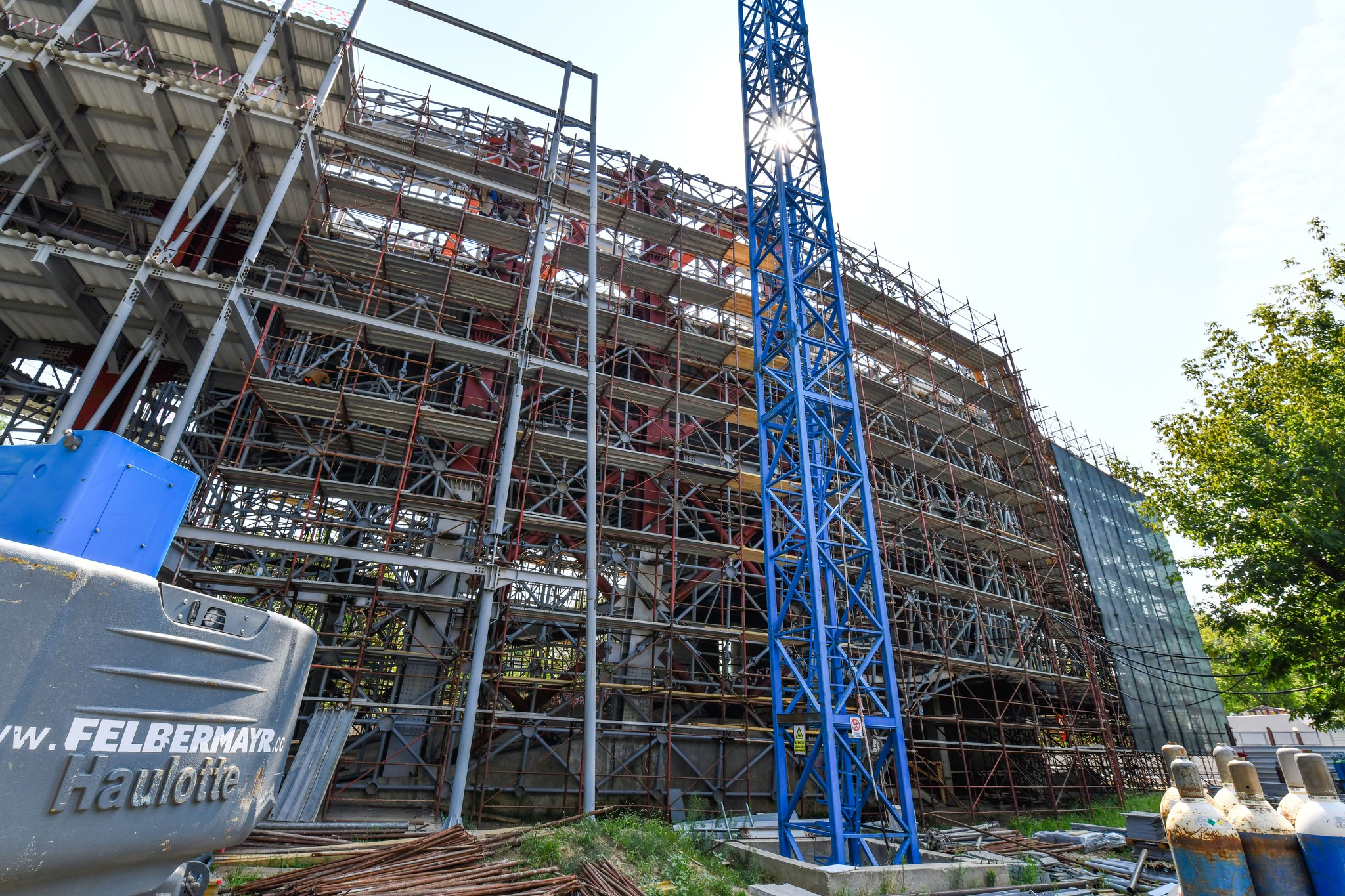 După închiderea cu tablă, se pot continua la interior lucrările de arhitectură, instalații și finisaje.