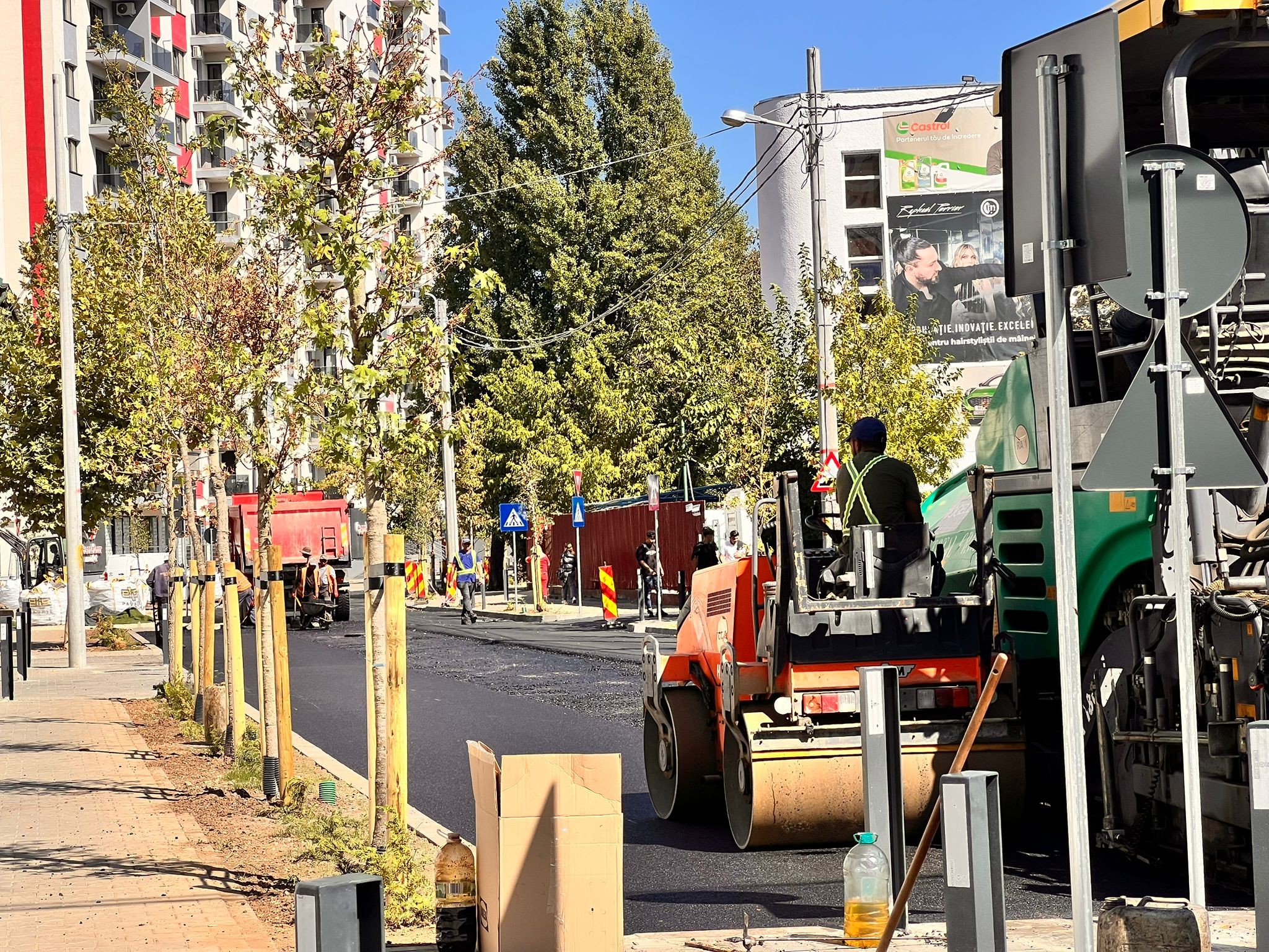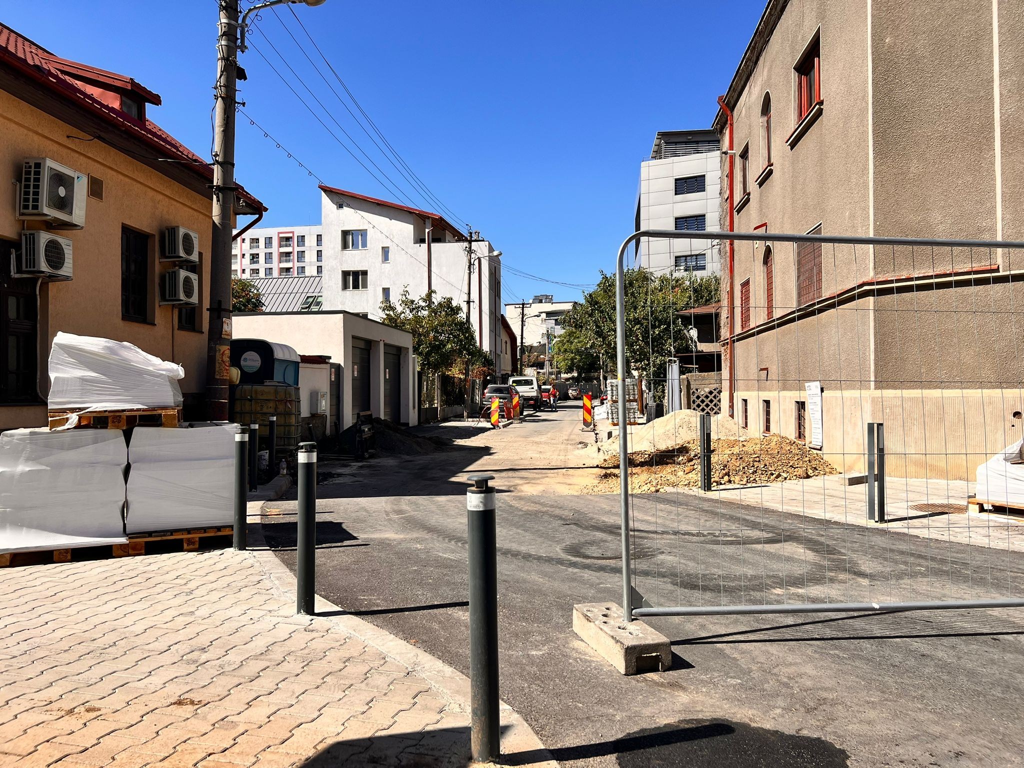 Totodată, avansăm treaba pe strada Ștefan Marinescu. Suntem aproape gata cu trotuarele, apoi turnăm betonul și asfaltul.