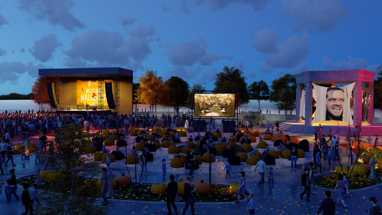 Surprizele nu se opresc aici. La West Side Hallo Fest, veți mai putea admira o rochie inspirată din celebra melodie „November Rain”. Este făcută din 2.500 de frunze, asamblate și lipite în aceste zile de către 30 de senioare, membre în Clubul Seniorilor Sector 6. Ineditul obiect vestimentar va completa decorul de pe Lacul Morii, cu flori de toamnă, arcadele gigant, de 5 metri înălțime fiecare, traseele misterioase din 1.000 de baloți de paie, 15,5 tone de dovleci pictați sau sculptați. Vor fi concerte, ateliere pentru toate vârstele, statui vivante, expozanți cu produse tematice și, bineînțeles, mâncare bună.