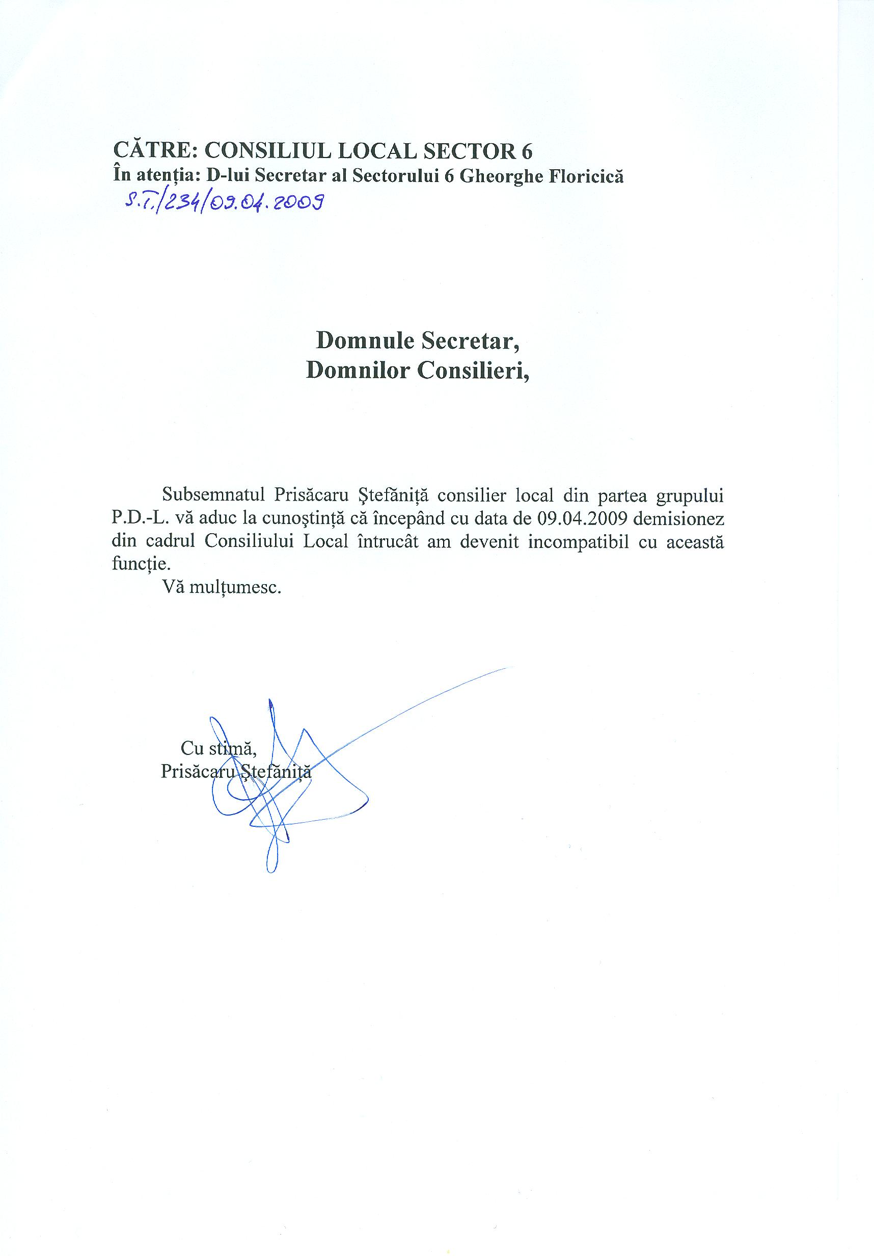 Hotărâre privind încetarea de drept a mandatului de consilier local al domnului Prisăcaru Ştefăniţă