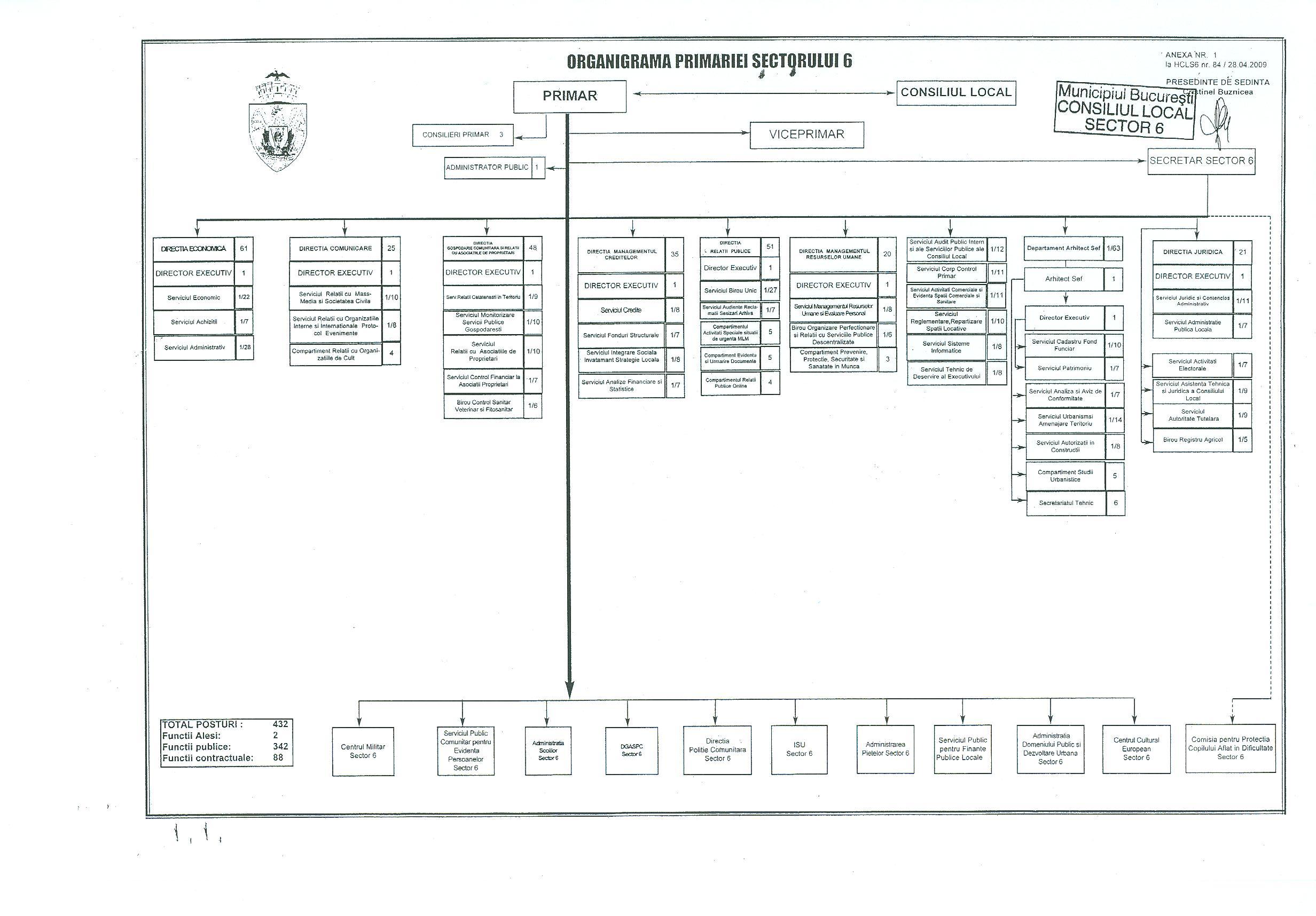 Hotărâre privind aprobarea Organigramei şi a Ştatului de Funcţii ale aparatului de specialitate al Primarului Sectorului 6 reorganizat