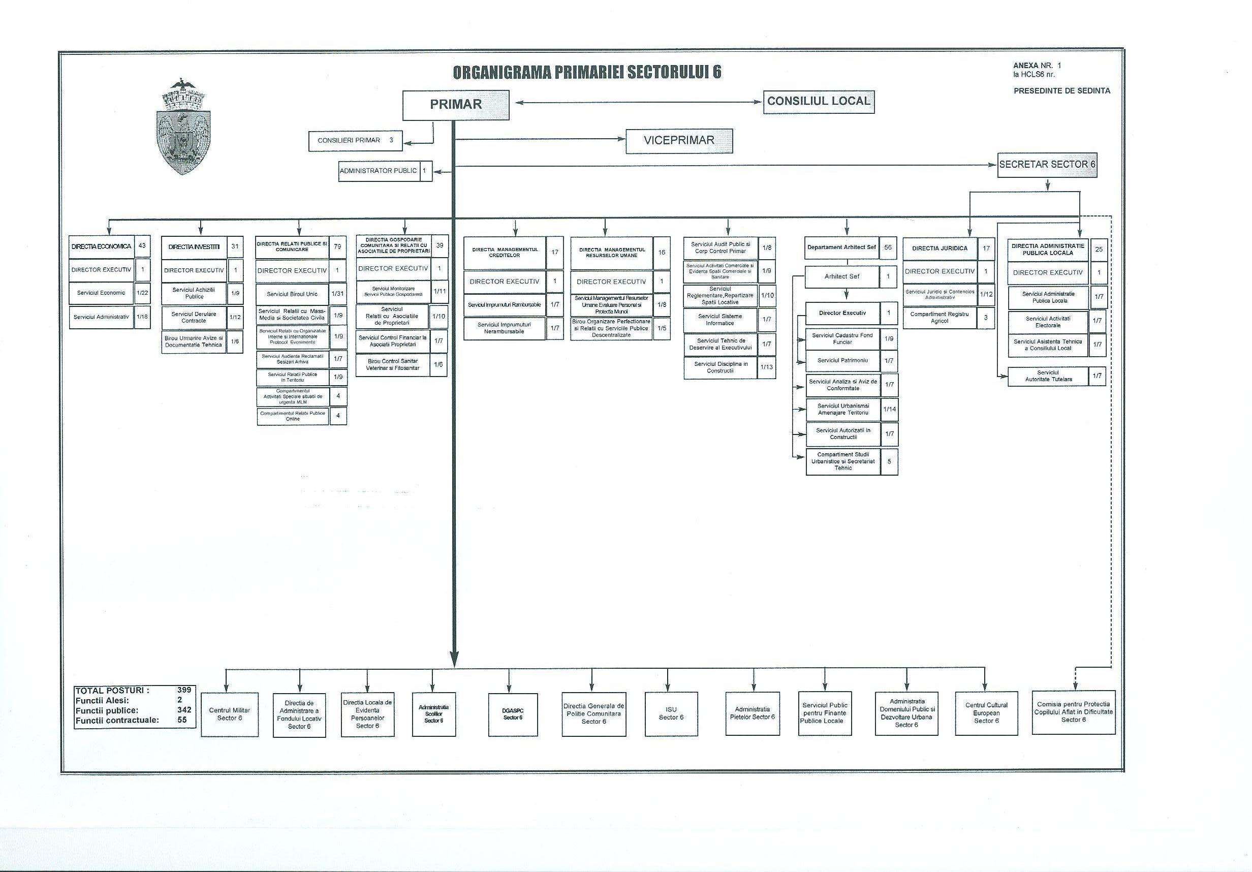 Hotărâre privind aprobarea Organigramei şi a Ştatului de Funcţii ale aparatului de specialitate al Primarului Sectorului 6, reorganizat