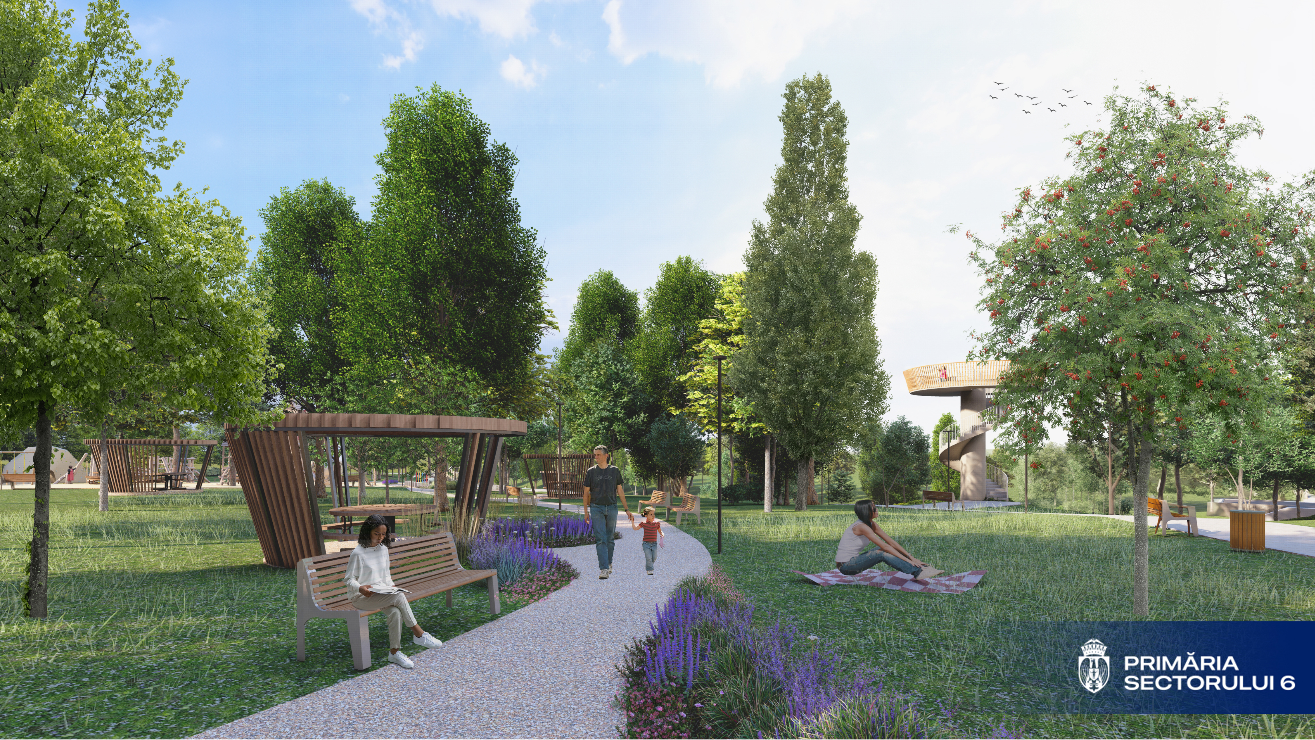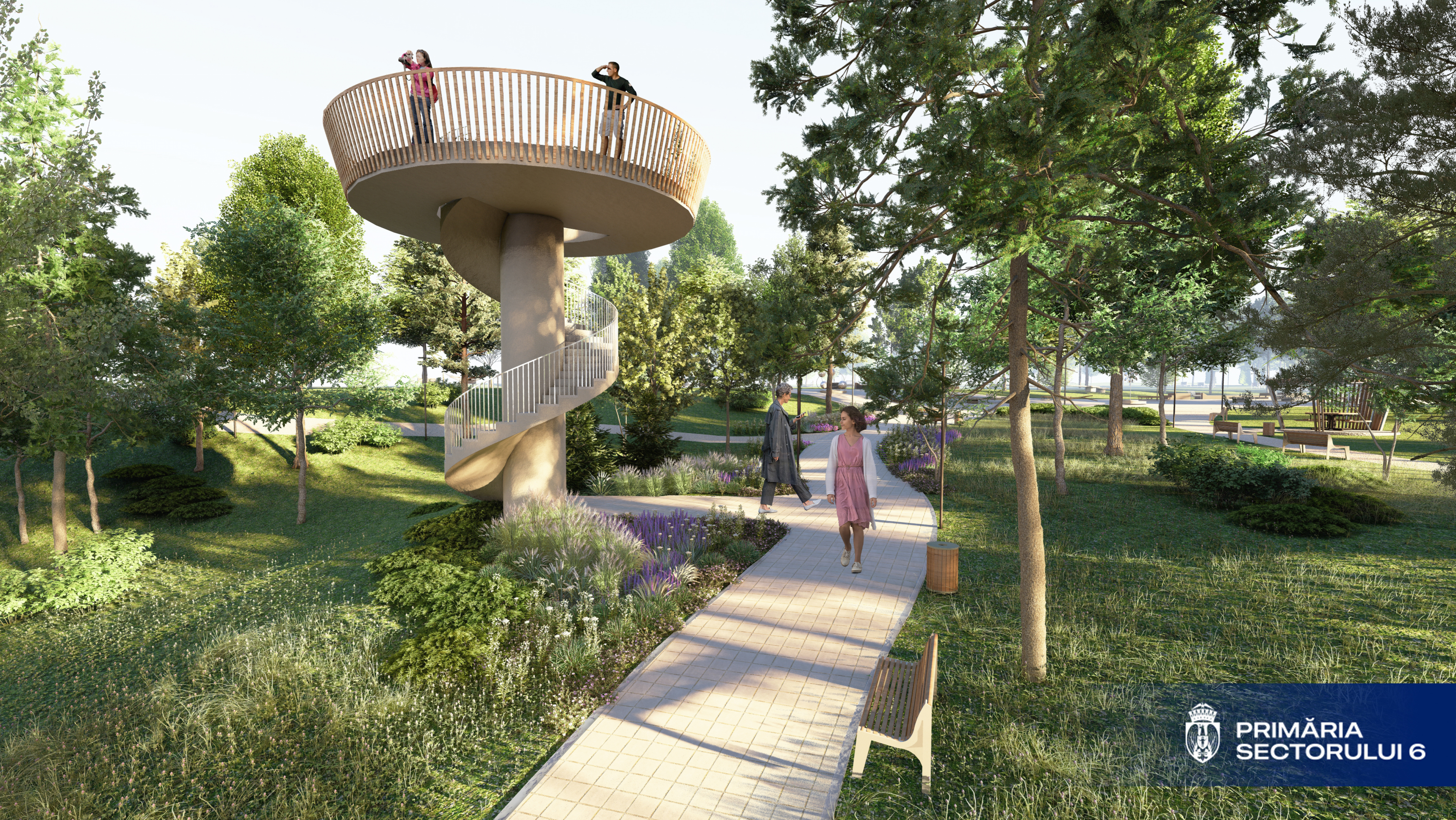 - Tot în centru, se va construi un turn de belvedere, cu perspectivă asupra parcului şi asupra râului Dâmboviţa.