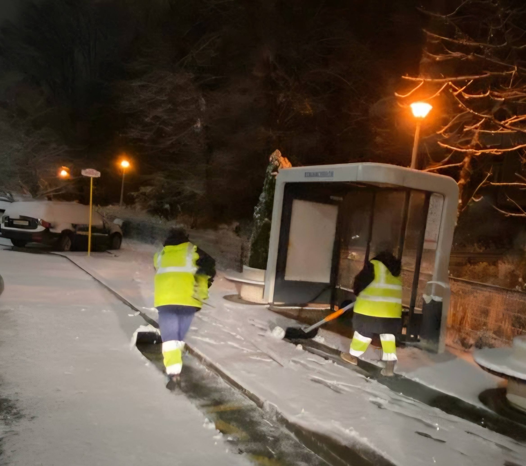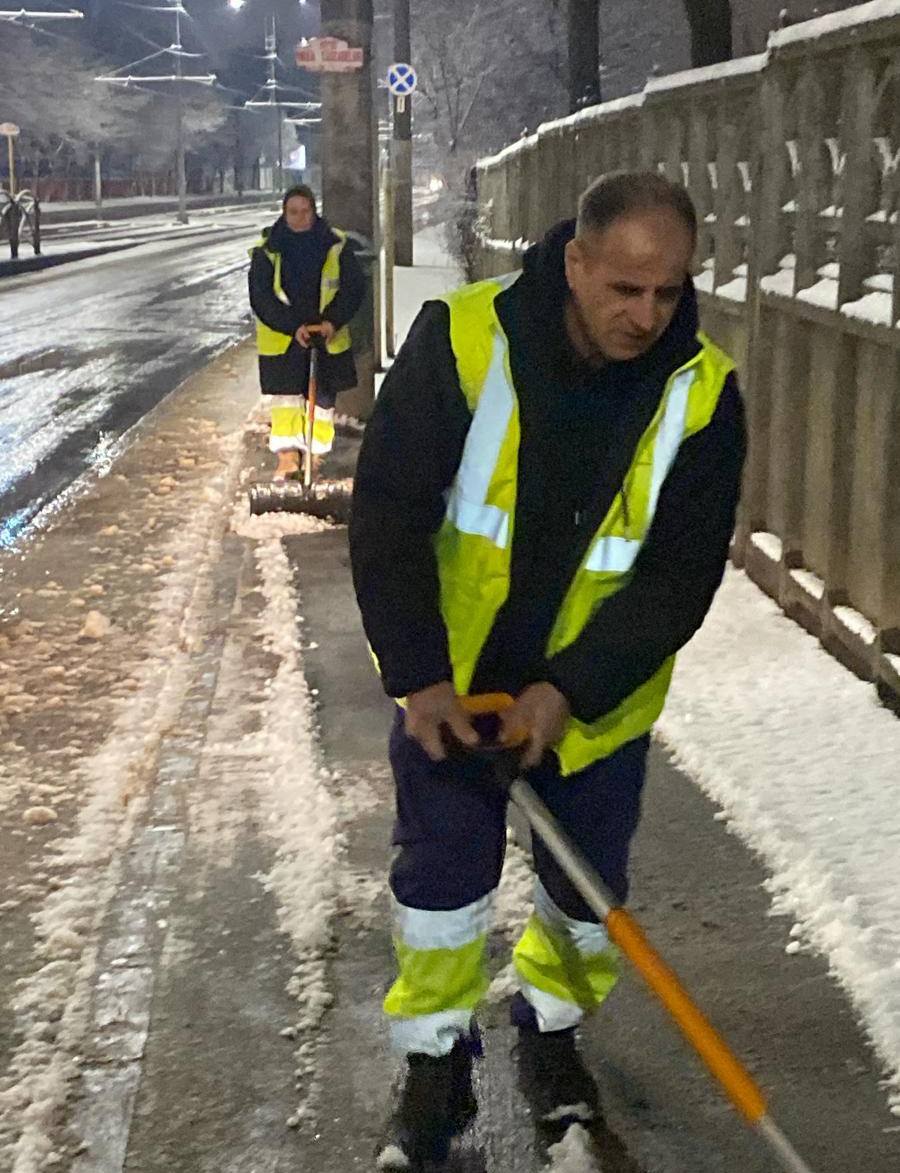 Pe străzi toată noaptea la deszăpezire. Am curățat trotuare, stații STB, treceri de pietoni, străduțe și bulevarde.