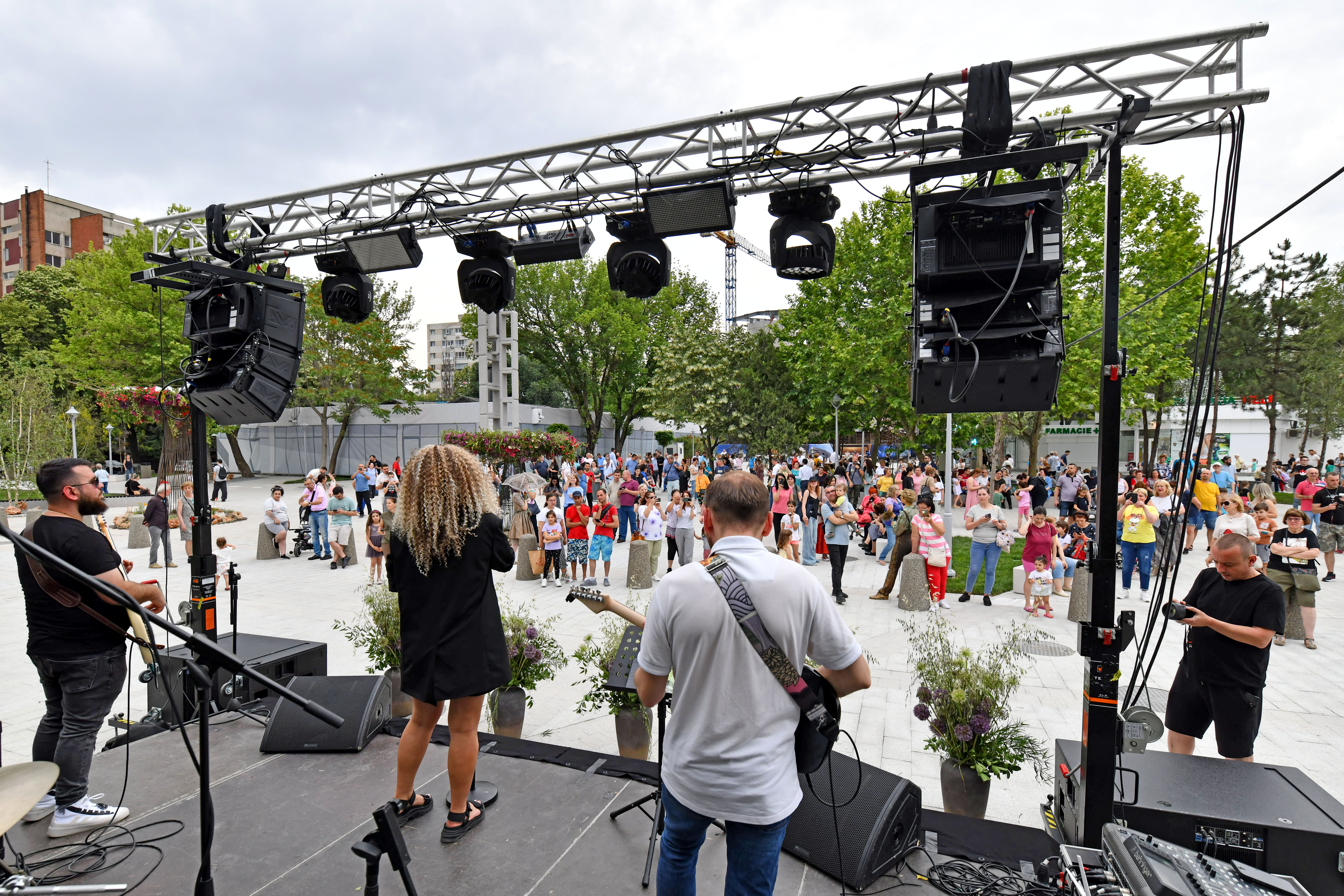 Pe fundal, răsună muzică bună de blues. Alexandra Crișan și bandul ei au venit să susțină un mic concert, ca o avanpremieră la ceea ce va urma să se întâmple aici. Copiii se joacă și se răcoresc la fântâna dry deck, unii tineri dansează.