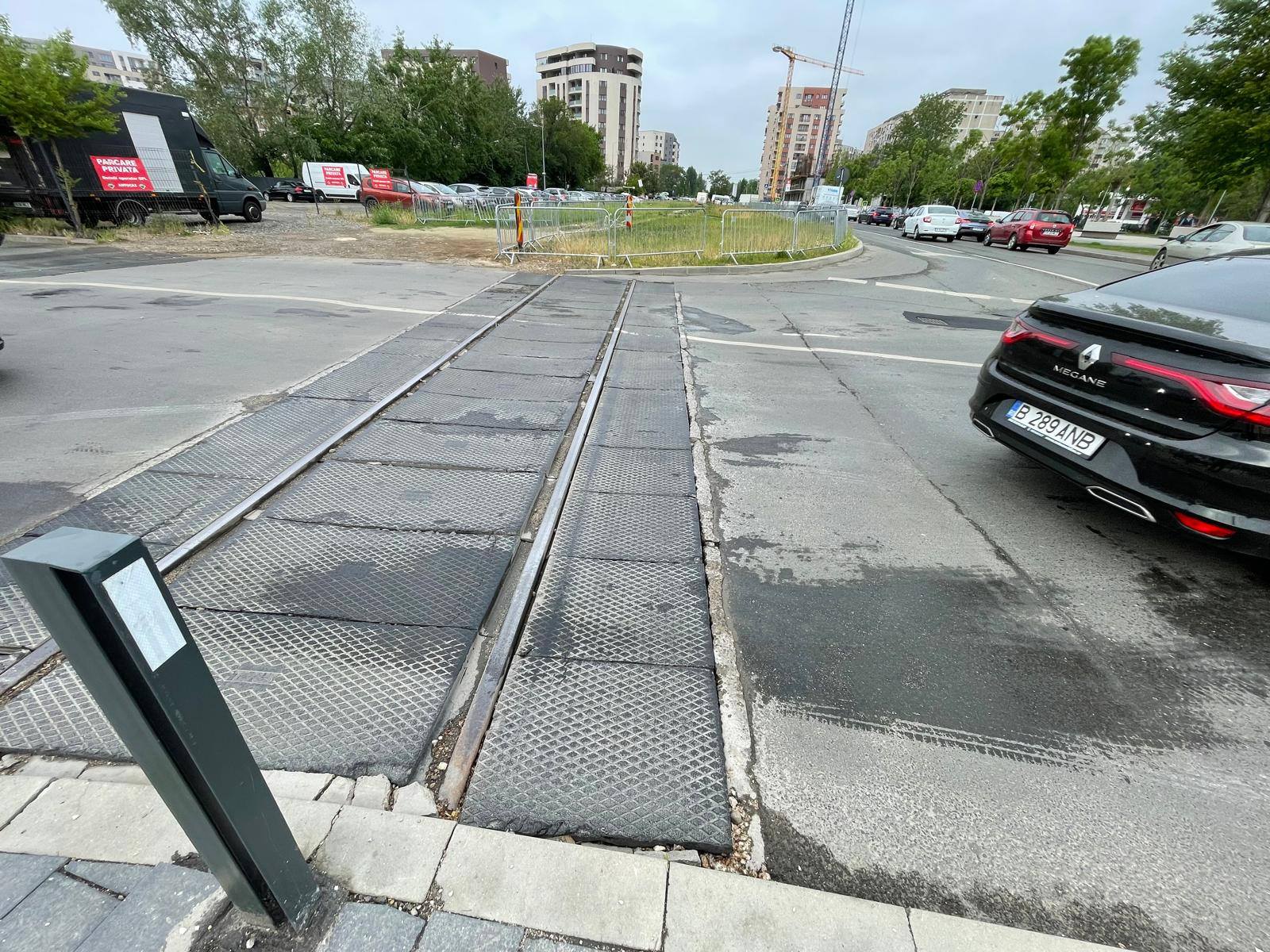 Muncitorii și utilajele au intrat în forță în marți dimineață și au scos dalele și traversele. Vor umple spațiul cu pietriș, apoi vor acoperi calea ferată cu dale noi, elastice, în care să nu vă mai rupeți mașinile.