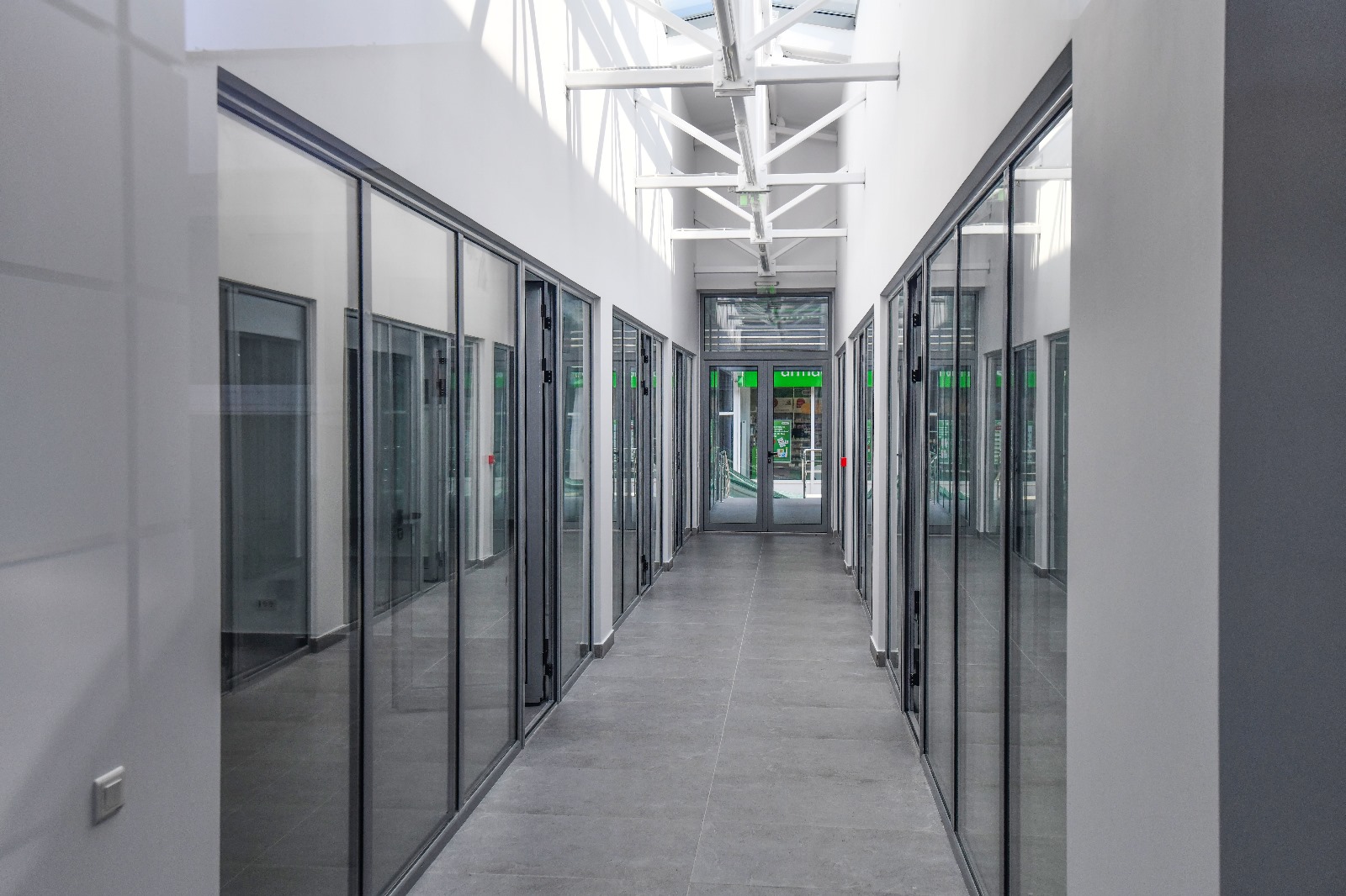 Pe lângă spaţiile comerciale, el mai are băi și spații de depozitare. Are fațadă rezistentă la intemperii, sisteme moderne de iluminat, climatizare.